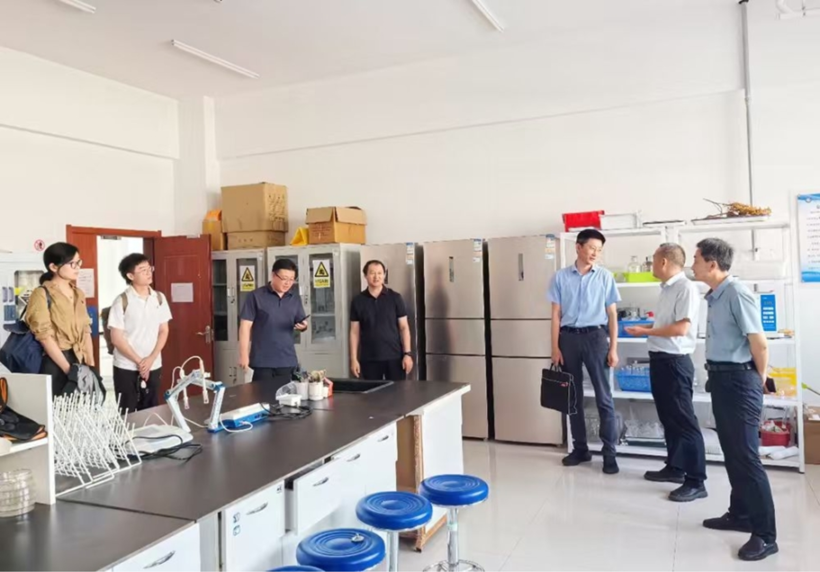 孙永刚副校长首先代表学校对张文副处长一行的到来表示热烈欢迎,对内蒙古应急管理厅、赤峰市应急管理局长期以来对我校的支持表示衷心感谢,并介绍了学校的发展态势、学科与科研布局,就下一步与内蒙古应急管理厅深化合作提出了初步架构;汤获处长介绍了学校近几年科研进展和情况;资源环境与建筑工程学院院长欧阳江城介绍了学院学科、专业、科研情况,梁海山副院长详细介绍了赤峰市国土空间规划与灾害应急管理重点实验室建设情况;王菜林教授从自然灾害、社会风险、矿山安全与农业风险四个方向详细汇报了团队在内蒙古应急管理领域的成果积累和下一步研究重点。会后,调研组一行参观了重点实验室。