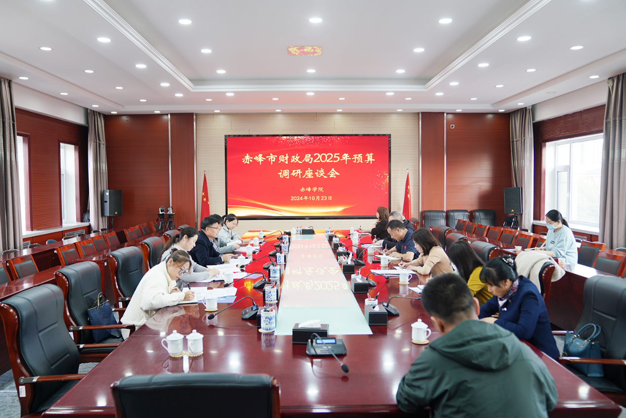 10月23日下午,赤峰市财政局副局长孙志民带领主管科室全体人员来我校就2025年预算编制工作进行调研座谈。校长王怀栋、学校计划财务处全体人员、三个附属单位财务负责人参加座谈。