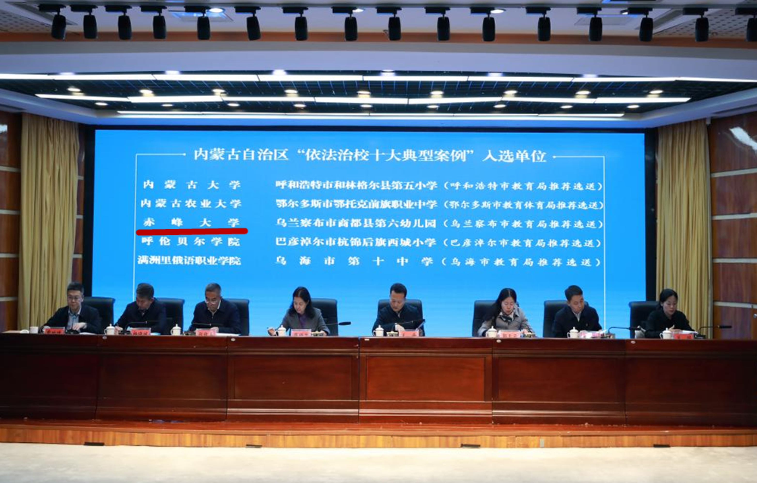 自治区“依法治校十大典型案例”遴选秉持公开、公平、公正原则,兼顾不同类型、不同层次学校代表性。赤峰大学凭借在依法治校体系构建、试点建设探索、风险防控落地等方面的突出成效成功入选,与内蒙古大学、呼伦贝尔学院等高校及多地中小学、幼儿园共同成为全区依法治校优秀实践典范。此次入选既是对学校近年来依法治校工作成效的高度认可,也为全区高校破解法治建设共性难题、创新治理模式提供了可复制、可推广的解决方案。