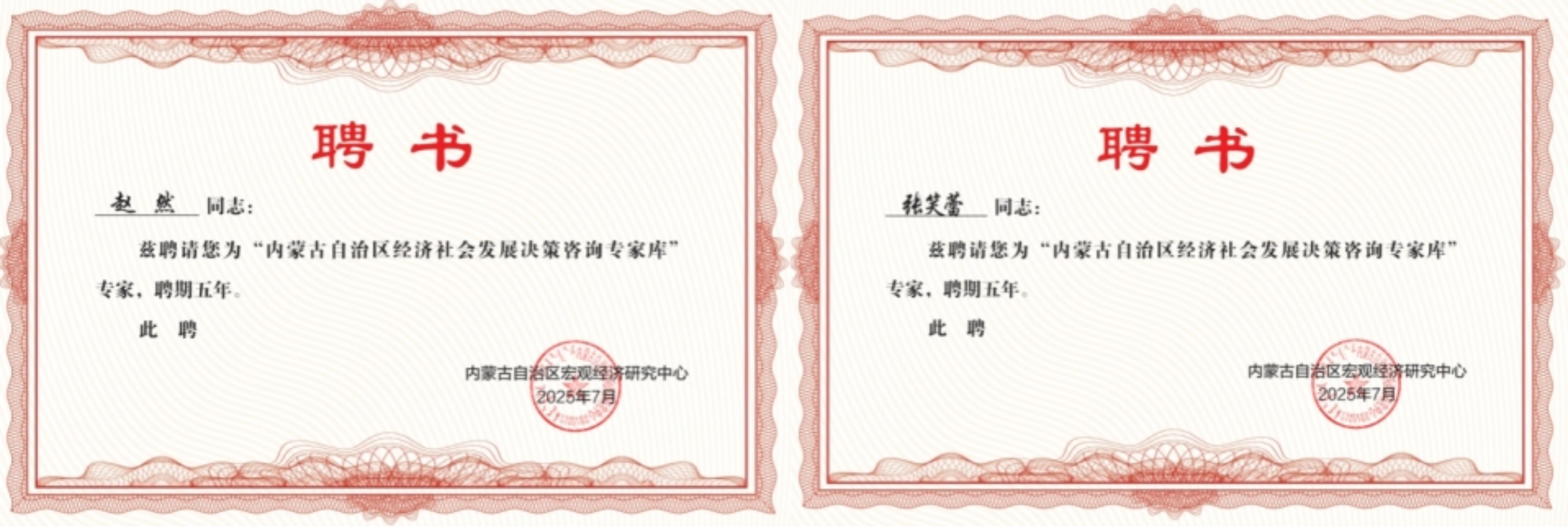 经济与管理学院两位教师受聘为内蒙古自治区经济社会发展决策咨询专家