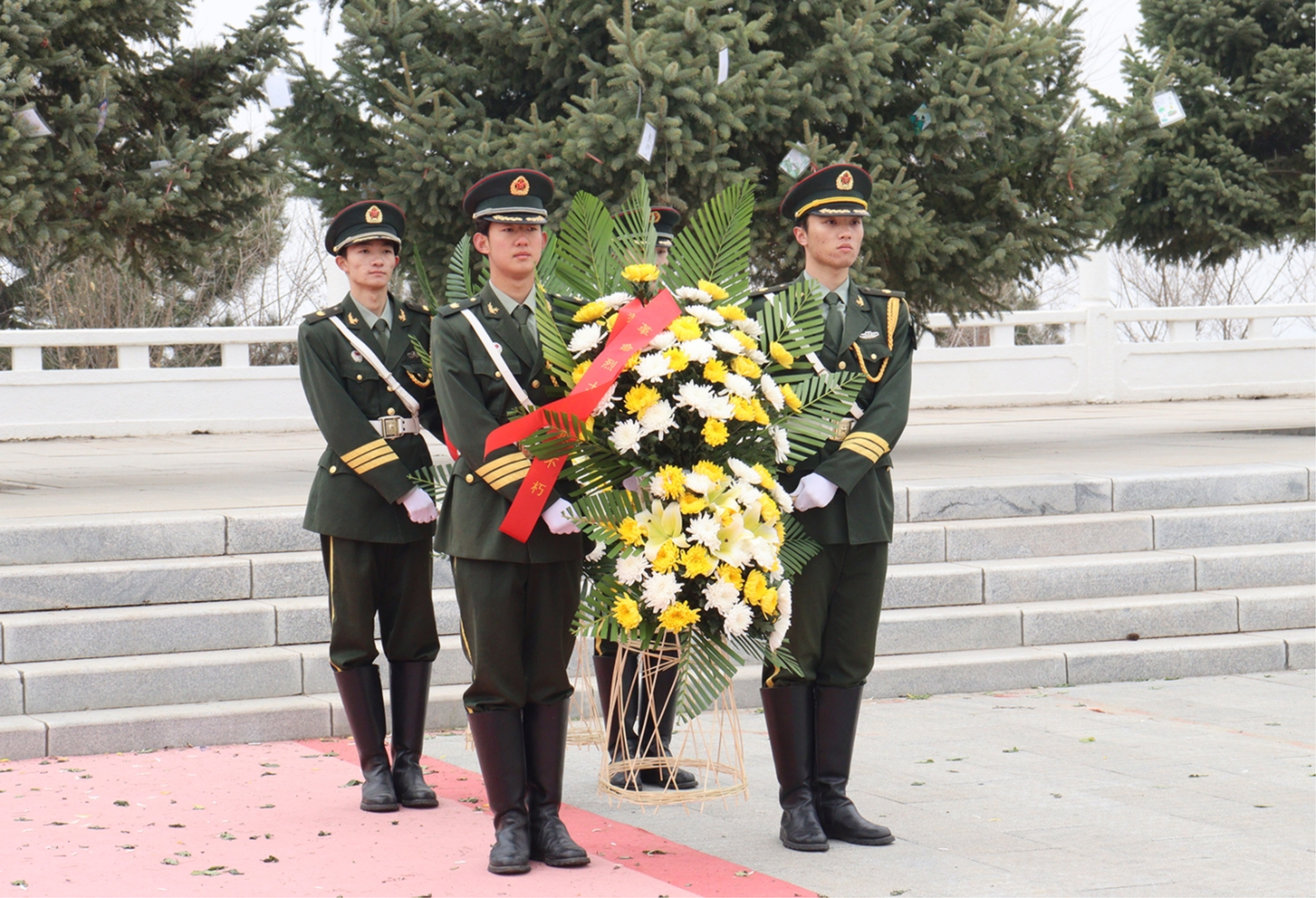 默哀毕,国旗护卫队队员代表全校师生向革命先烈敬献花篮;李伟威副书记缓步上前,仔细整理花篮缎带,表达对革命先烈的崇高敬意和无限追思。