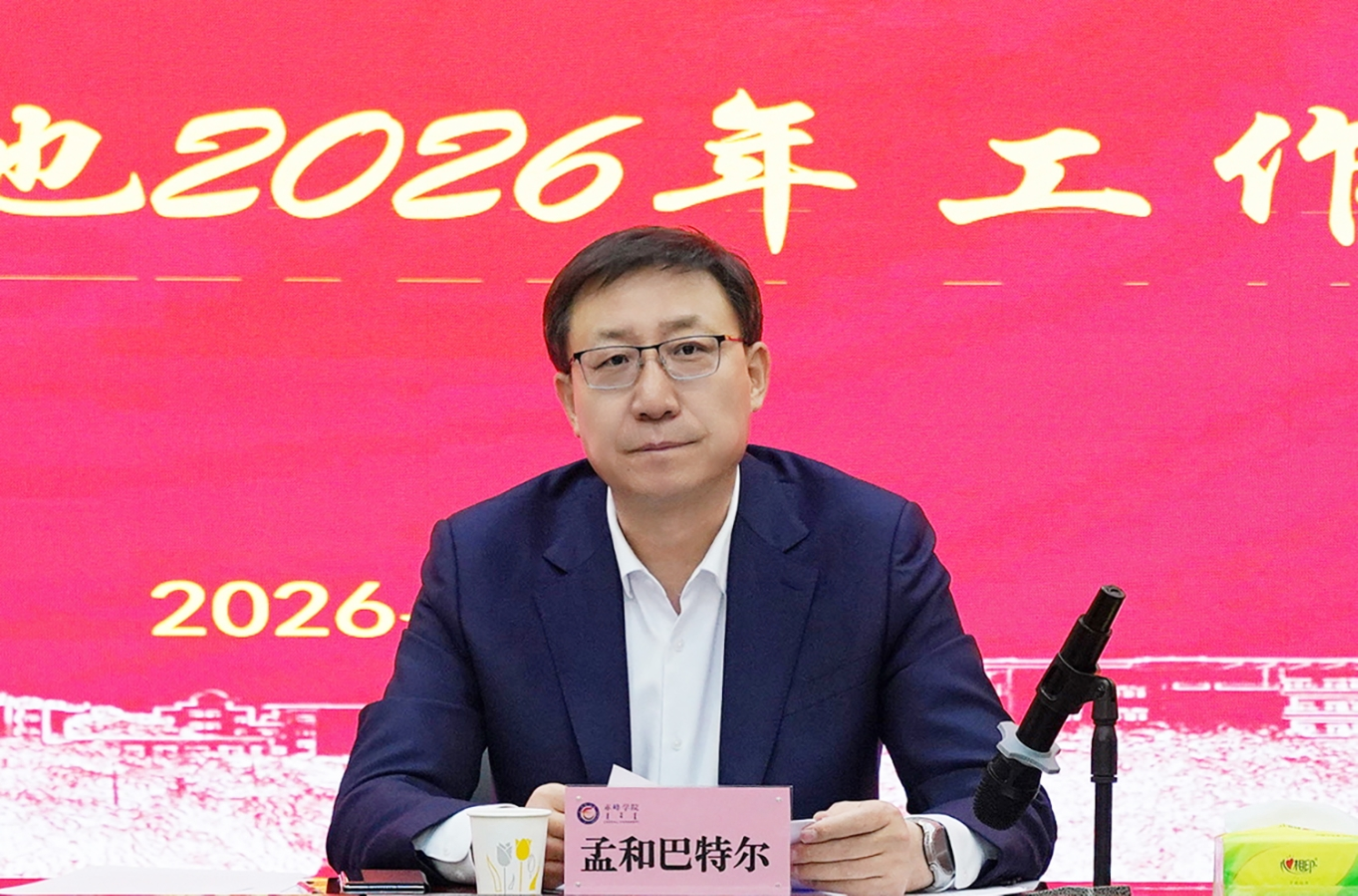 1月30日,赤峰学院红山文化与中华民族共同体研究基地2026年工作会议在赤峰市铸牢中华民族共同体意识宣传教育基地一楼学术会议室召开。学校党委书记、基地主任孟和巴特尔出席会议并讲话。党委委员、副校长、基地首席专家孙永刚教授传达相关文件精神,并就基地2025年工作进行系统总结,安排部署下一阶段课题研究、成果转化和社会实践等各项工作。学校党委组织部、党委宣传部、历史文化学院、马克思主义学院等相关单位负责人和基地骨干20余人参加会议。会议由党委委员、统战部部长、基地办公室主任齐建萍主持。
