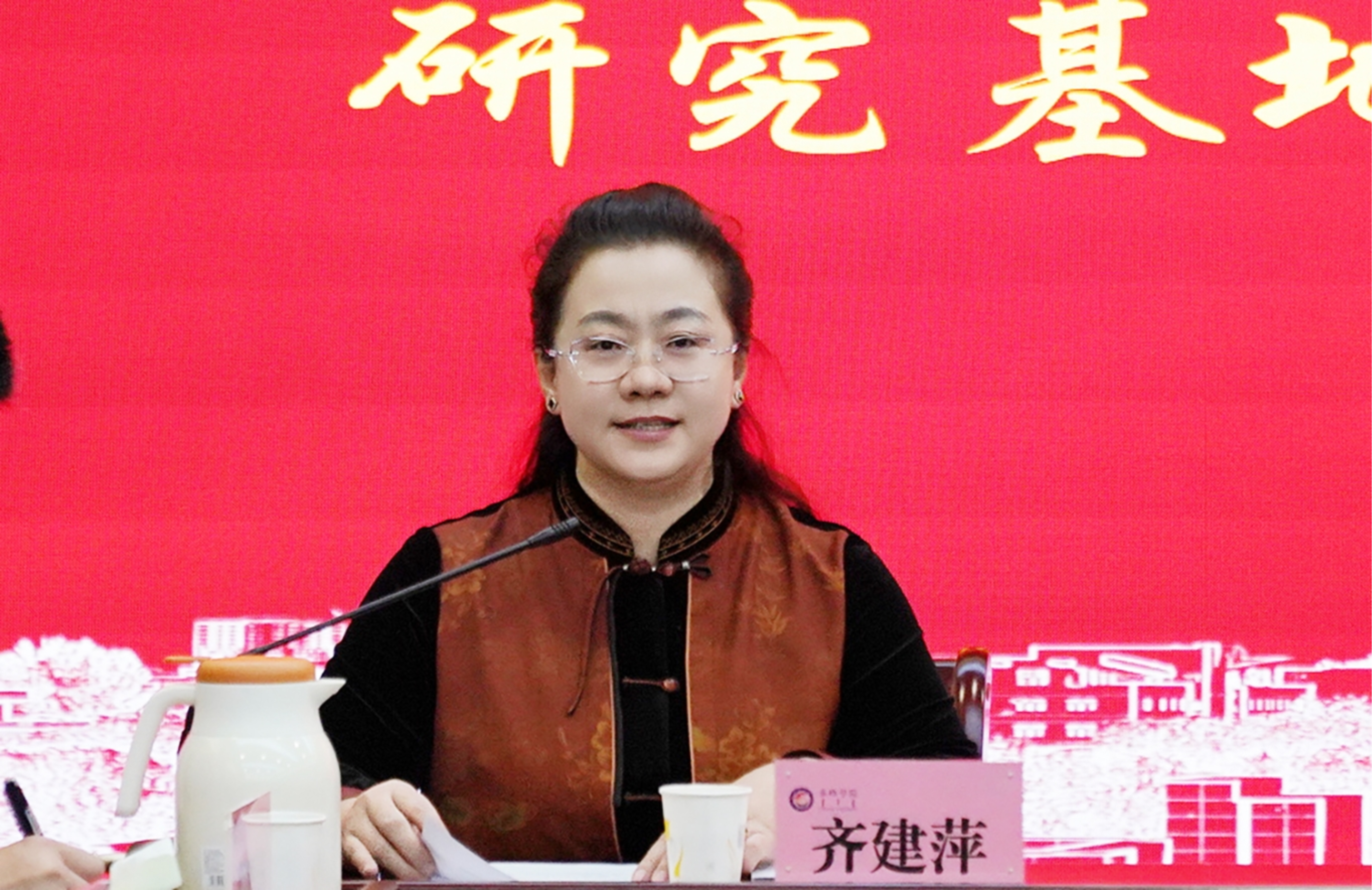 孟和巴特尔书记在会上强调,要提高政治站位、压实工作责任,始终牢牢把握铸牢中华民族共同体意识工作主线,推动研究工作与自治区党委“1571”工作部署深度融合,与赤峰市“五市五区”重点任务契合,结合专业特点和学科优势扎实开展工作。一要聚焦现实需求优化研究选题,立足红山文化、辽文化等特色研究基础,对接民族团结进步创建、育人体系融入等现实议题,避免课题碎片化;二要注重成果转化实效,推动理论研究向决策咨询、教学资源、宣传载体转化,依托宣传教育基地扩大社会影响力;三要强化统筹协调,完善跨学院跨学科协同机制,通过项目牵引、团队协作形成工作合力,推动基地提质增效。
