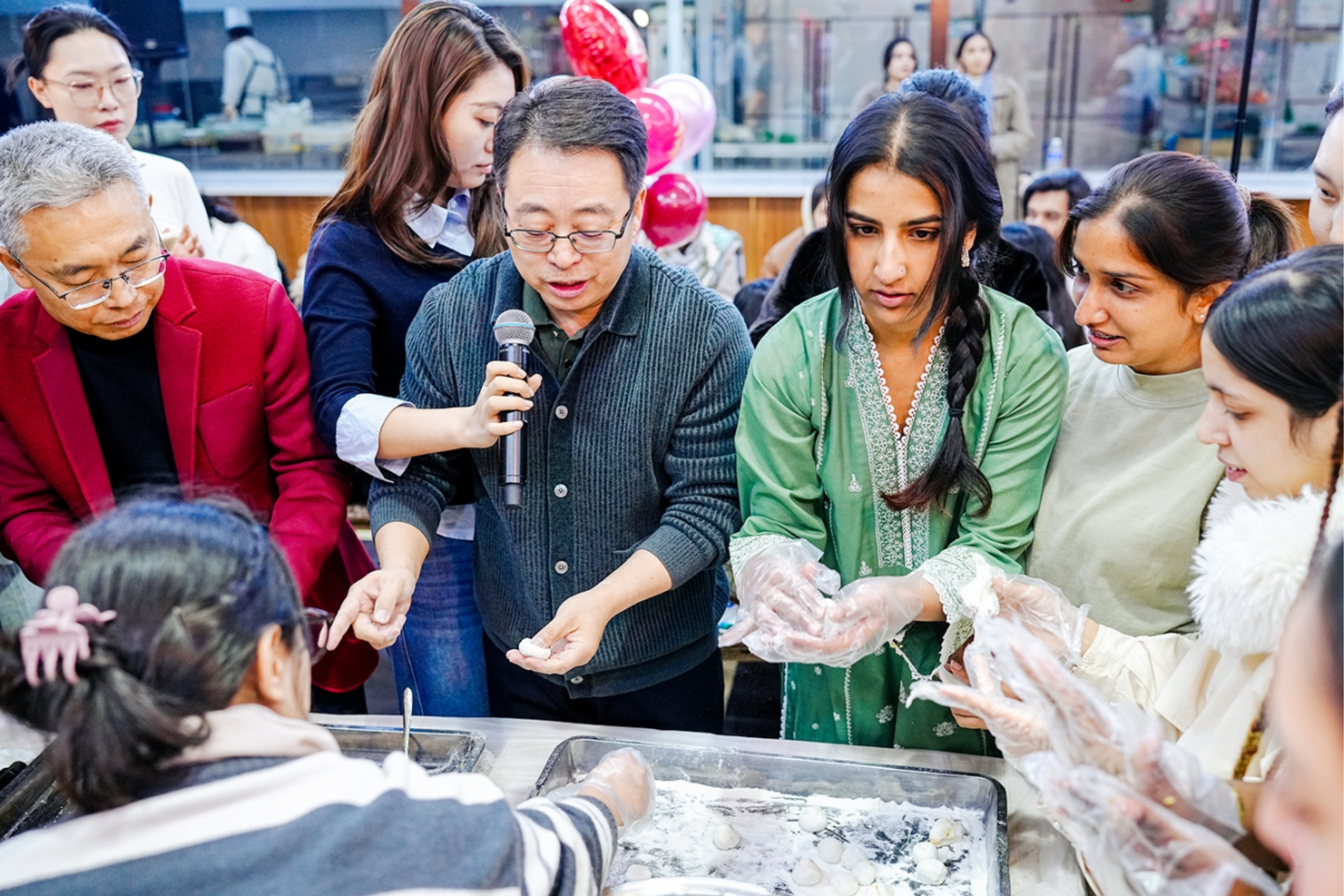 3月2日,元宵节前夕,赤峰学院嘉禾园三楼教职工餐厅被装扮得喜庆、热烈而又温馨。由我校校友会主办,国际教育学院、校友会赤峰分会协办的“my汤圆——当元宵遇上世界——校友与留学生之约”元宵晚会在这里精彩上演。校党委副书记李伟威,党委委员、副校长徐振军、杨占君,党委委员、统战部部长齐建萍,学生工作处、就业与校地合作处、国际教育学院、校友会负责人,部分校友代表和春节期间留在学校共度中国新春佳节的全体留学生一同参加了晚会。