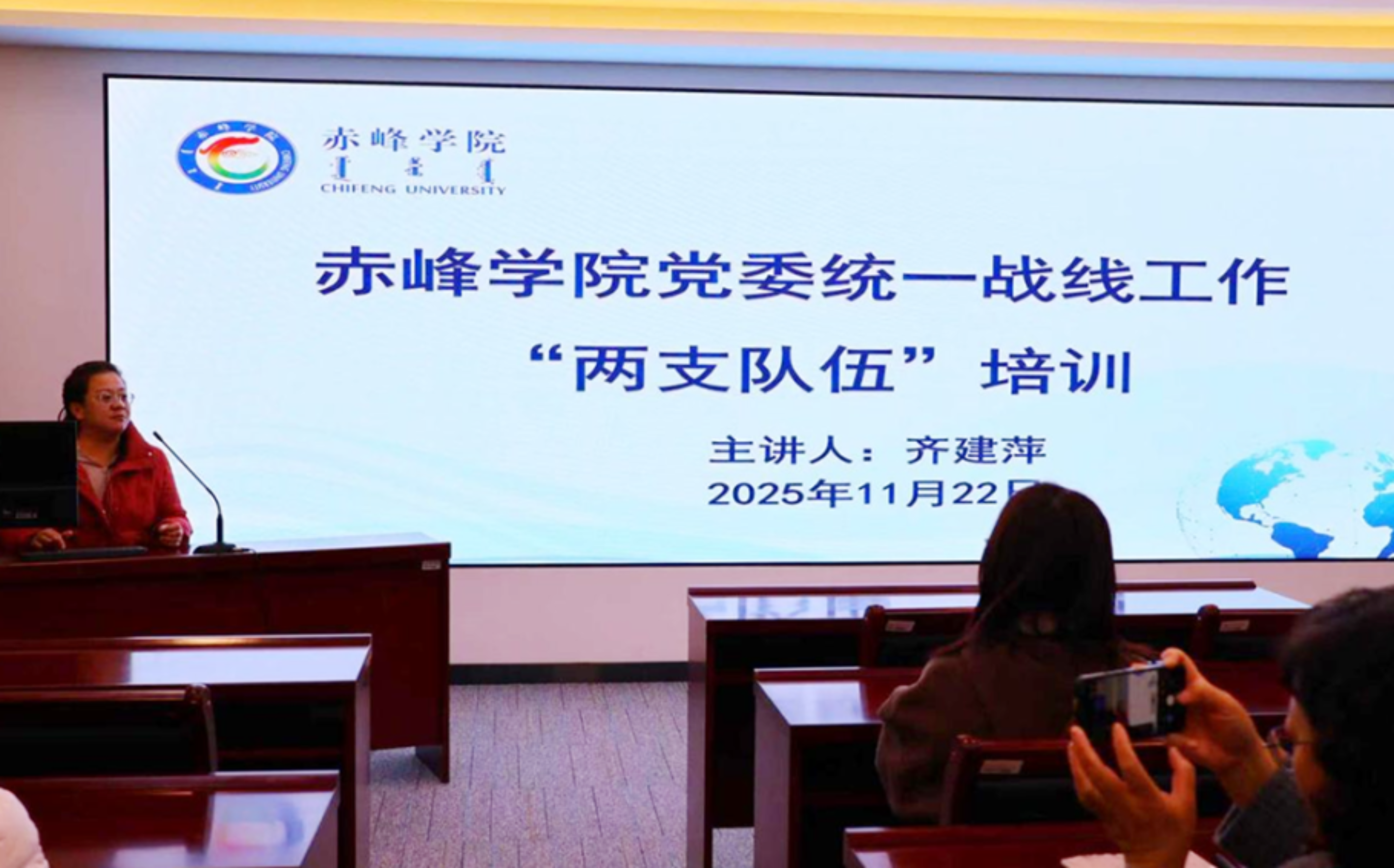 本次培训内容紧贴统战工作实际,重点突出、体系清晰。培训中,校党委委员、党委统战部部长齐建萍围绕党的二十届四中全会精神进行了专题辅导,从政治定位、战略部署和重点任务等方面进行了深入解读,引导参训人员全面把握新时代统战工作的要求和方向。随后,培训围绕赤峰学院落实统战工作责任制任务清单开展专题讲授,从责任落实、制度体系和推进机制等方面进行了分析说明,进一步明确了统战工作中各层级的职责分工。培训还对宗教工作相关政策文件进行了讲解,重点介绍了政策依据、工作规范和风险防范,为参训人员加强宗教工作提供了实践指导。