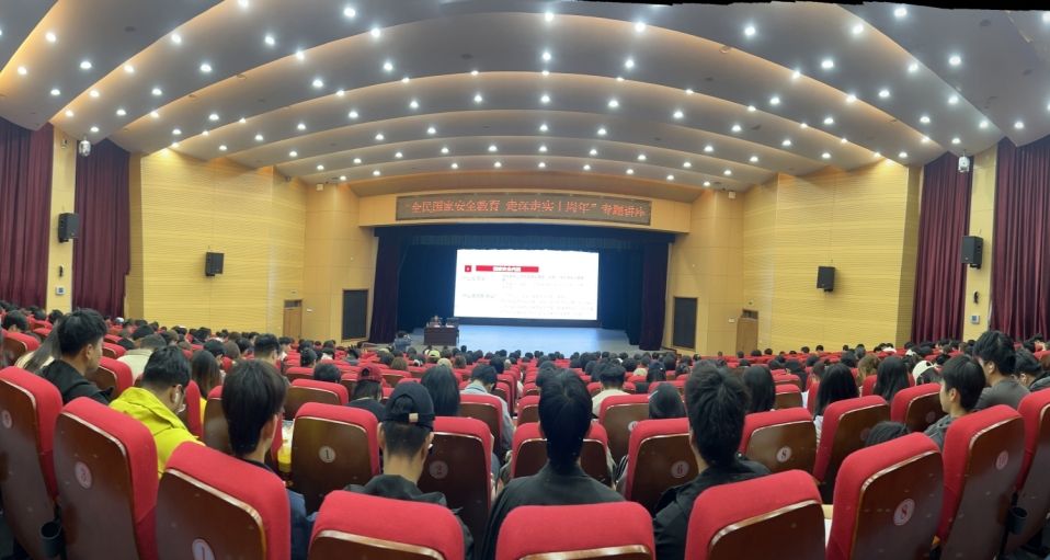 4月16日下午,学校面向各单位安全员、辅导员代表、近两年新入职教职工、物业管理人员、保安队成员、各二级学院学生代表在大剧场举办了一场国家安全专题讲座。