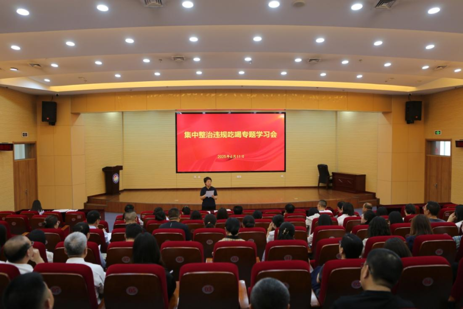 6月11日上午,学校党委集中整治违规吃喝专题学习会在学术报告厅召开。