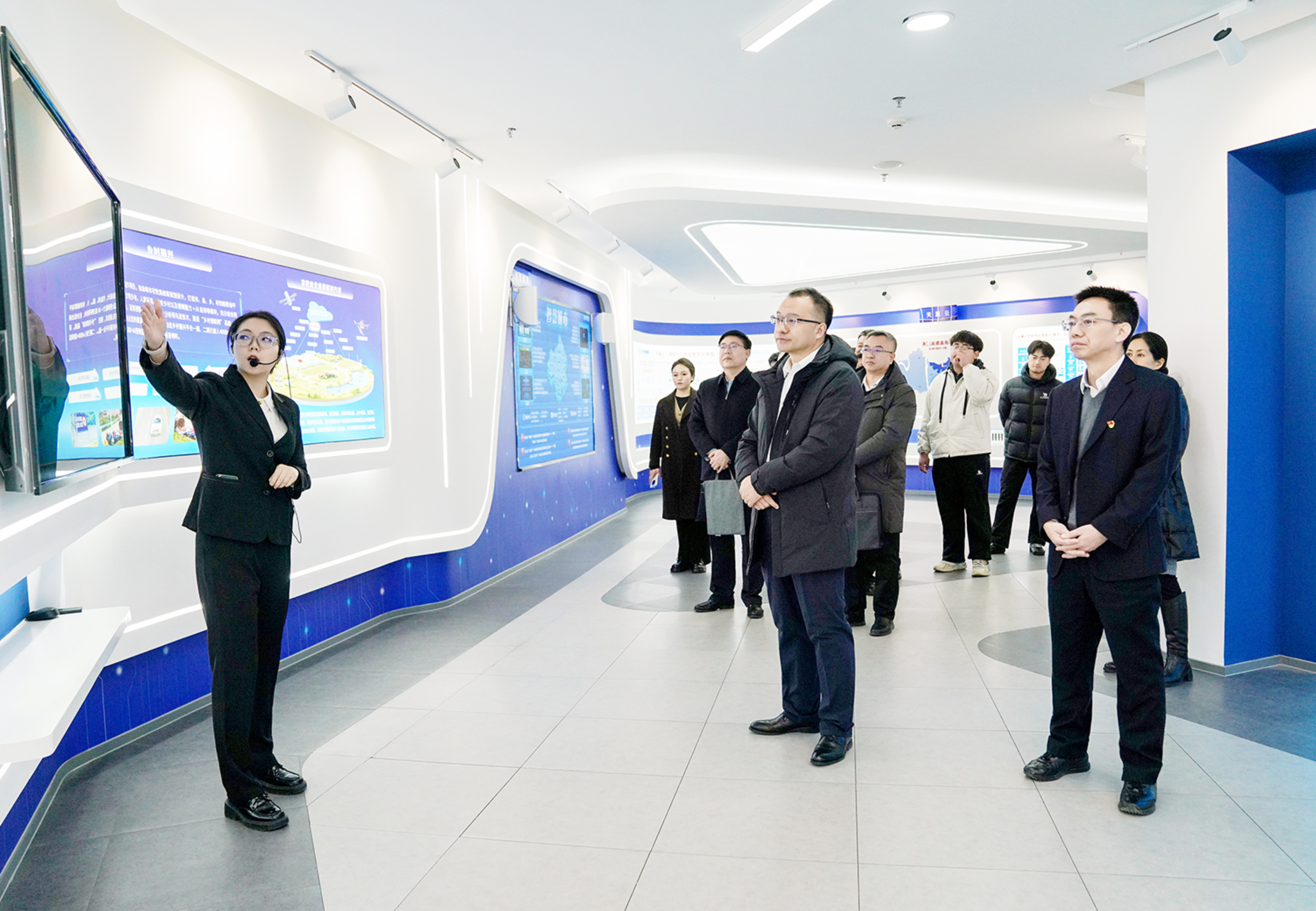 季祥校长一行在中国电信股份有限公司赤峰分公司党委书记、总经理白旭光的陪同下参观了“天翼云”平台办公区域与技术展厅,详细了解企业运营模式、业务布局及数字化建设成果。