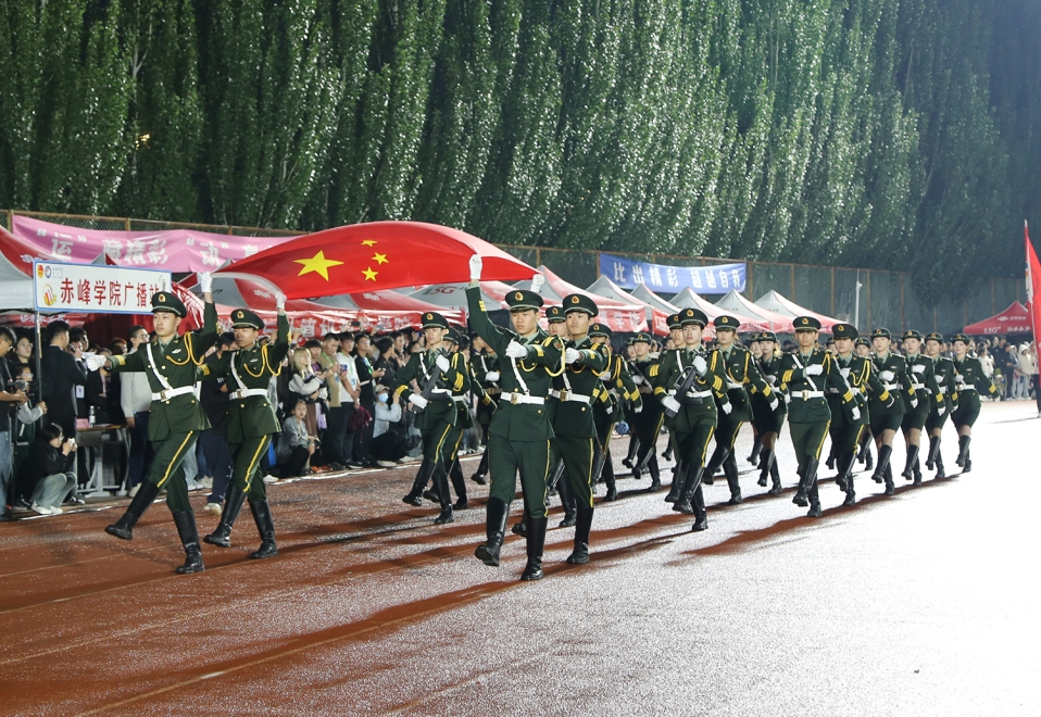 在激昂的乐曲声中,国旗护卫队、校徽校旗护卫队、彩旗队和由各二级单位师生组成的30支方队依次入场。饱满的热情、飒爽的英姿、铿锵的步伐、响亮的口号,充分展现出赤峰学院人拼搏进取、矢志奋斗的精神风貌。