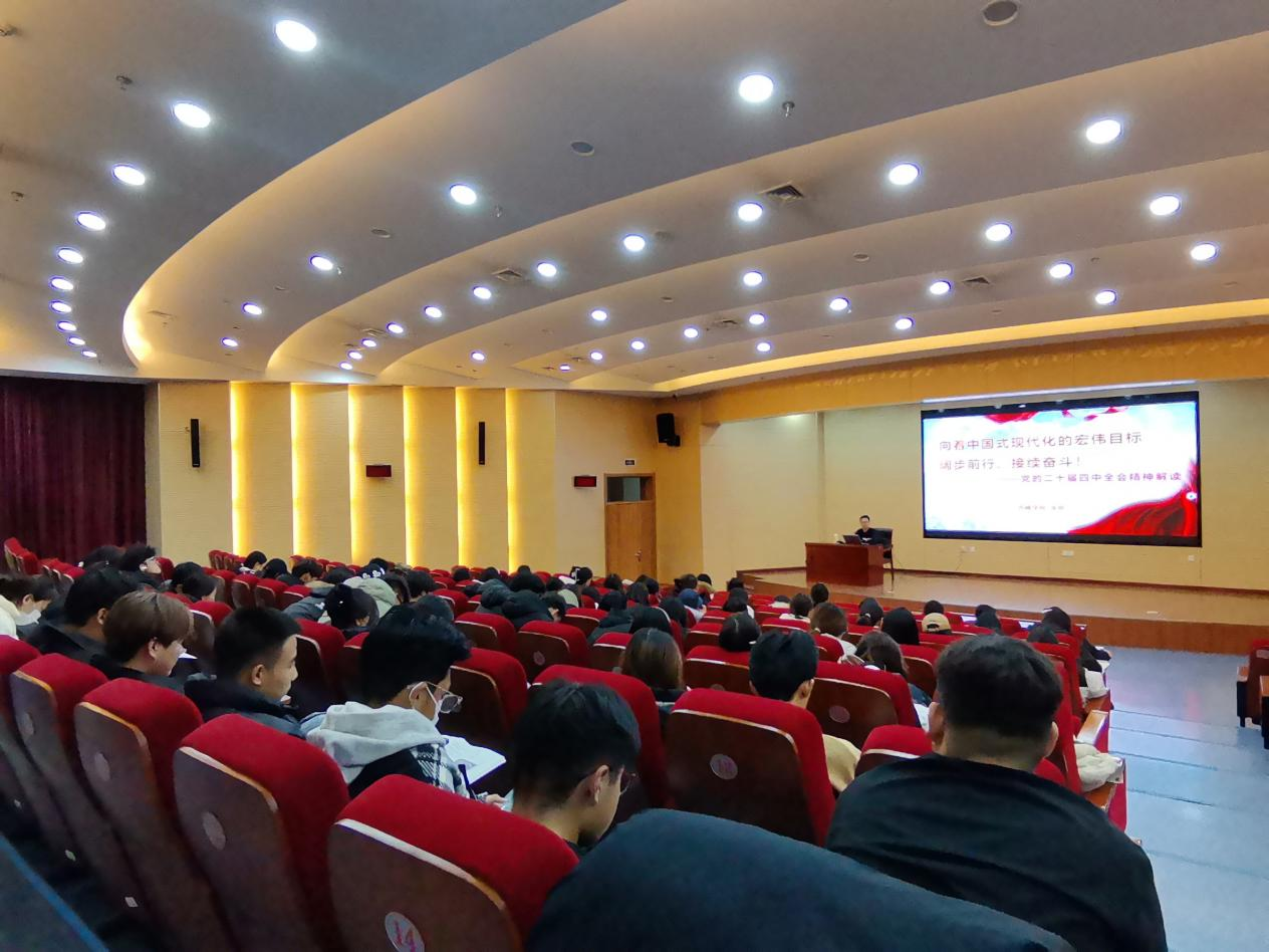 11月21日,马克思主义学院在博物馆二楼学术报告厅举办党的二十届四中全会精神专题党课。马克思主义学院党总支书记张明主讲。学院团总支学生会全体成员、各班班委、团支部书记聆听党课。