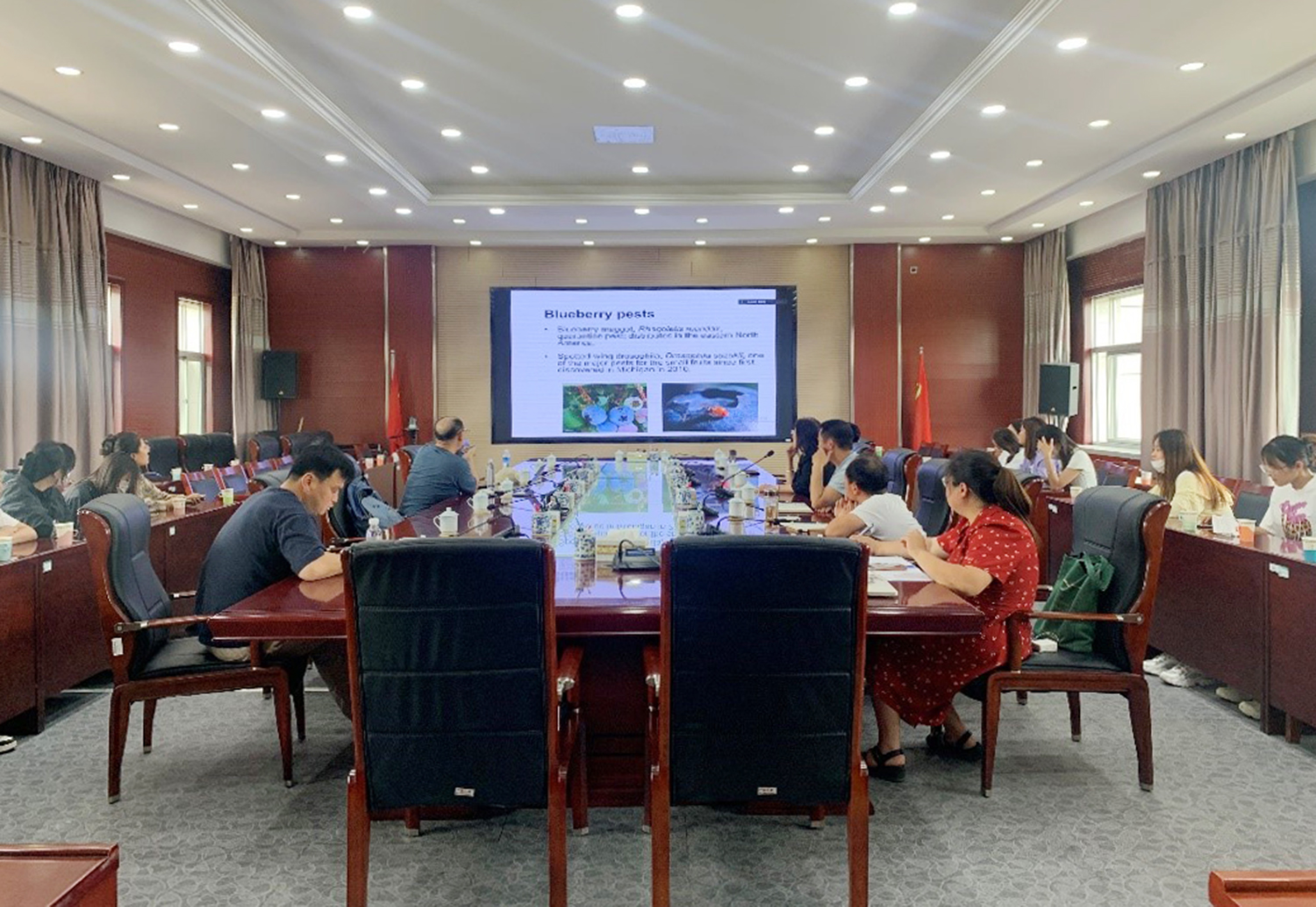 交流会上,哈布哈陈•照日格图博士以“Post-harvest control of blueberry and grain pests by fumigation(蓝莓和作物采后有害昆虫的防治)”为题,就蓝莓和作物采后有害昆虫的防治有关内容作了深入阐释,并与农学院师生围绕科研课题研究、学科专业建设、团队建设等工作进行了深度研讨与交流。期间,农学院还与照日格图老师在科学研究、学术交流等方面达成了初步合作意向。