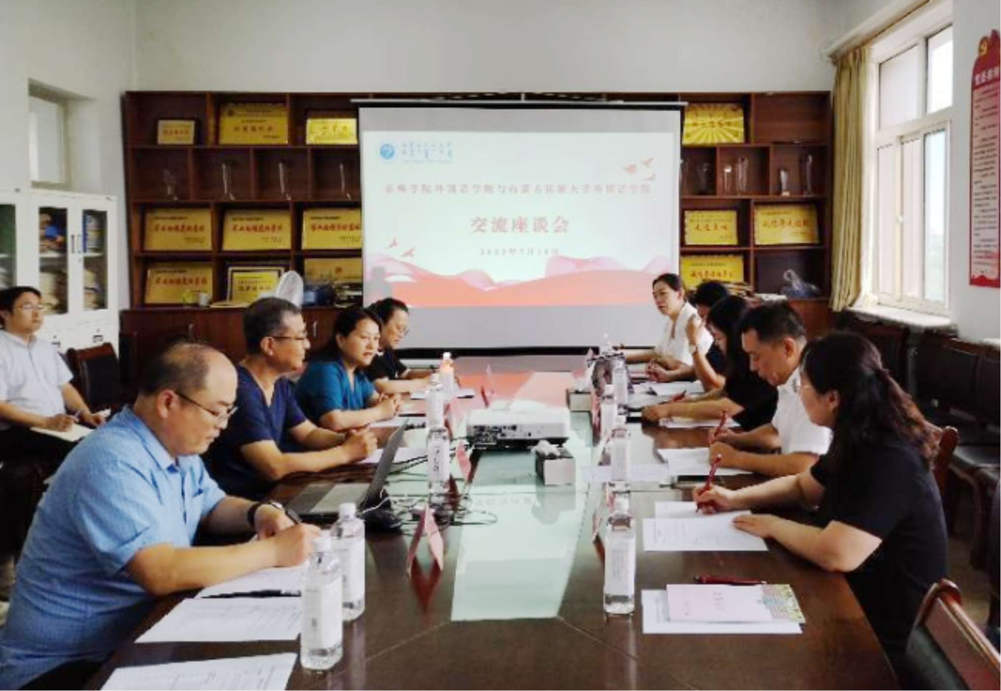 您所在当前位置: 首页 > 院系风采 院系风采 外国语学院赴内蒙古民族大学交流学习 时间:2023-07-14 来源: 作者: 日前,外国语学院党总支书记关立峰、院长康英华一行5人围绕研究生硕士点申报、研究生管理模式、学生就业、党建工作、师范专业建设等内容,赴内蒙古民族大学外国语学院交流学习,并商谈导师聘任及后期合作等事宜。