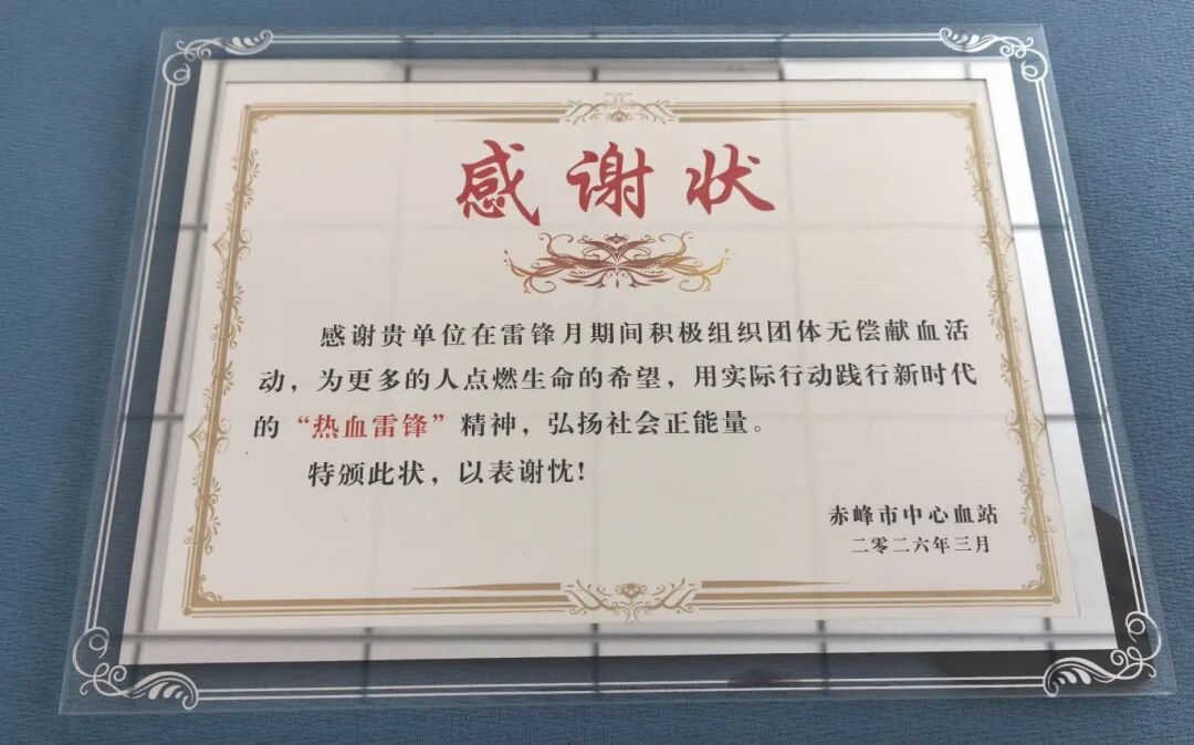 团团资讯|赤峰市中心血站向我校发来感谢状