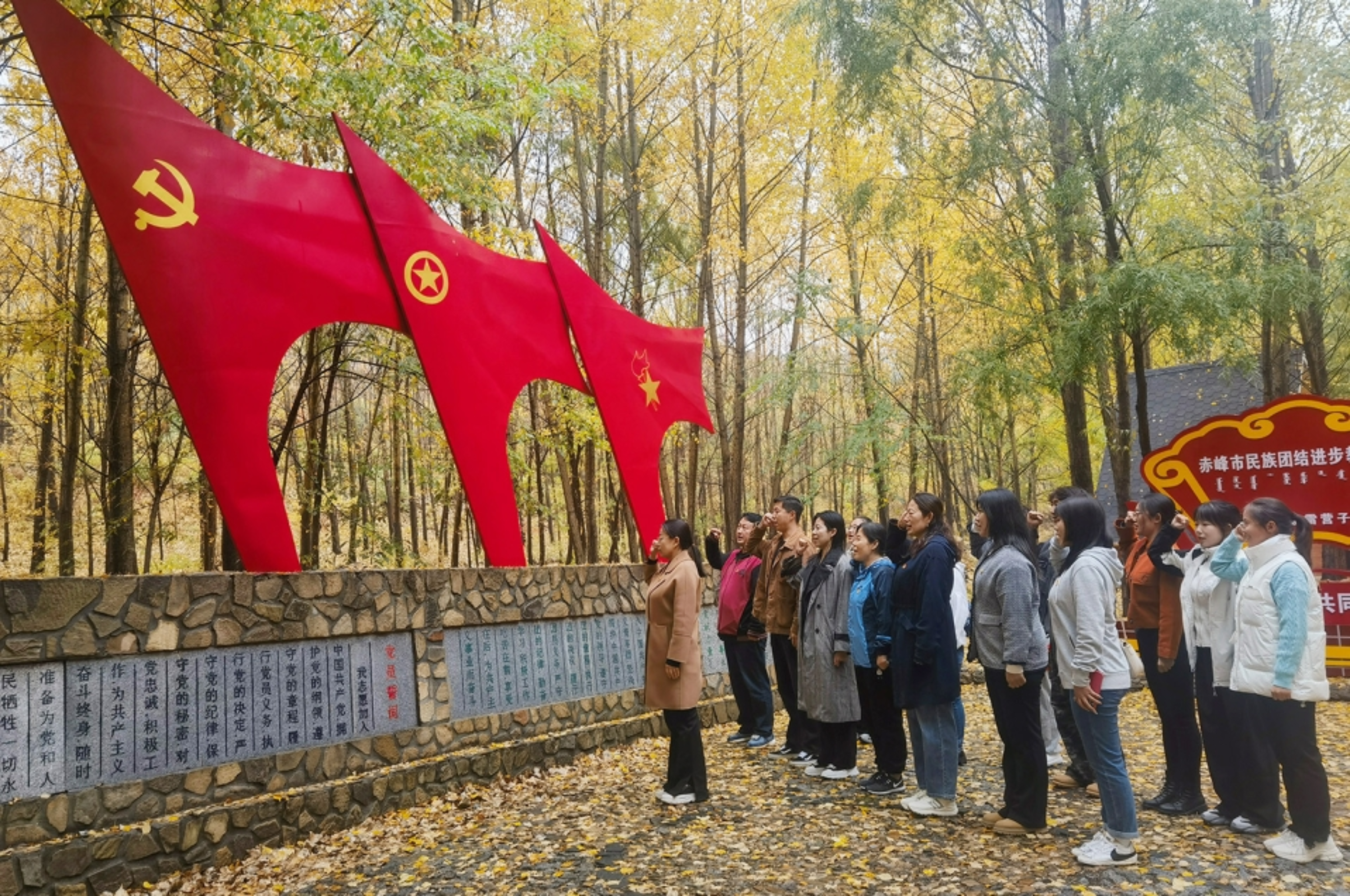 10月13日,中医(蒙医)学院在喀喇沁旗雷营子红色教育基地开展“传承红色精神 砥砺理想信念”主题党日活动。党总支副书记申洋,副院长孙明子,教工党支部、学生党支部全体党员和入党积极分子参加活动。