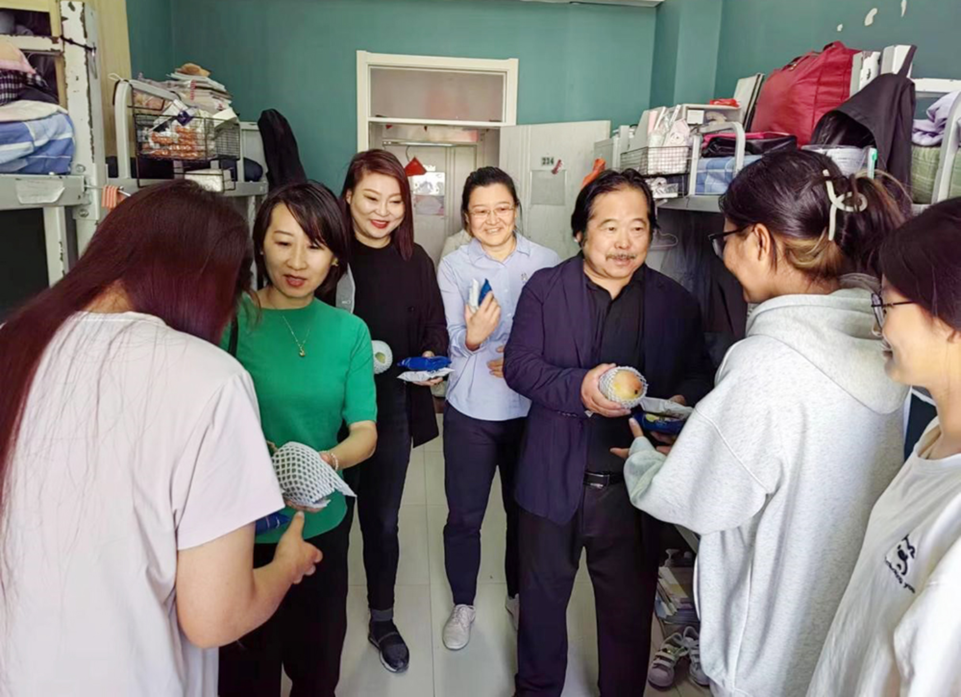 真情温暖送上门。中秋节当天,美术学院党总支书记才智颖、院长都仁仓、党总支副书记王高飞、副院长王琨和新生辅导员走进学生宿舍,看望慰问了留校学生,向他们致以节日问候和祝福,送上了慰问品,并叮嘱大家遵守学校相关规定,合理规划假期生活,度过一个平安快乐的节日。师生们的欢声笑语充满了整个宿舍,不仅缓解了同学们的思乡之情,也拉近了师生之间的距离和感情。