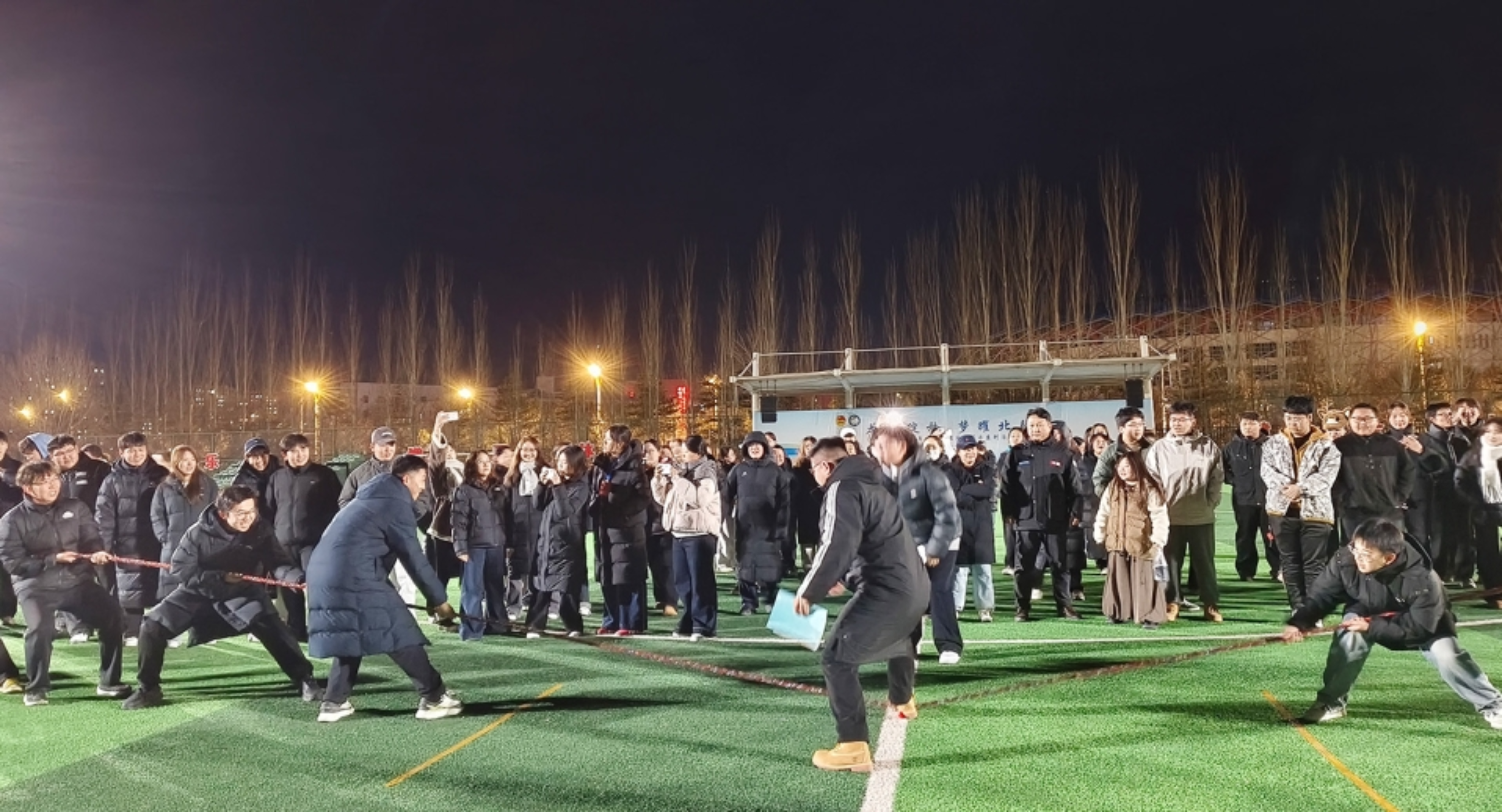 您所在当前位置: 首页 > 院系风采 院系风采 学风建设 | 中医(蒙医)学院举办拔河比赛 时间:2025-11-20 来源: 作者: 11月18日晚,中医(蒙医)学院举办拔河比赛,全体在校生齐聚操场,男女两组共11支队伍参与了此次比赛。经过多轮激烈角逐,最终评选出男子组和女子组前三名及优秀奖。此次比赛展现出了中医(蒙医)学院学生不屈不挠的拼搏姿态。学院将持续开展各类文体活动,助力学生在德智体美劳全面发展中锤炼品格、强健体魄。
