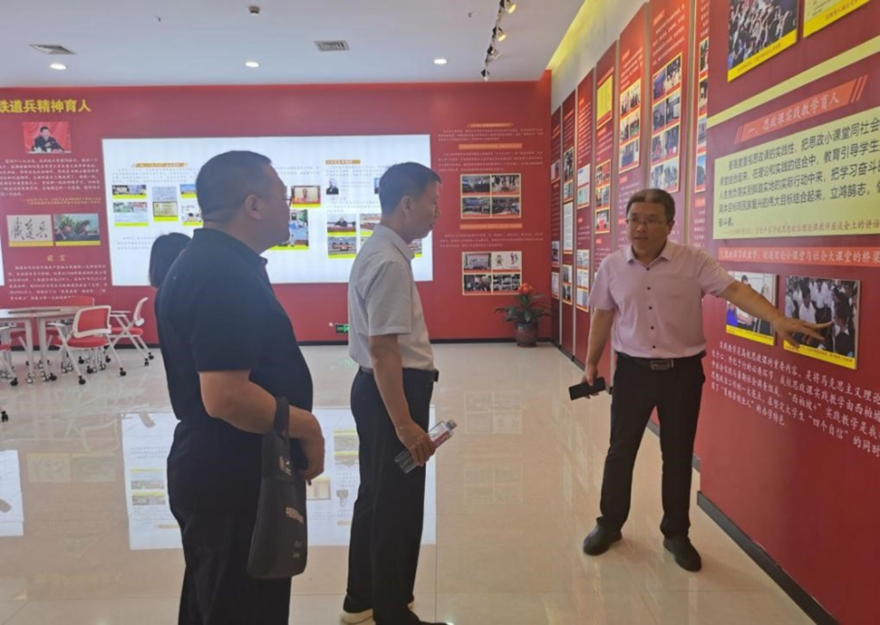 在石家庄铁道大学马克思主义学院,王文强院长一行与该院院长王宏斌等同志围绕学科建设、思政课VR虚拟仿真实验室建设、思想政治理论课教学改革等内容进行了深入交流,实地参观了石家庄铁道大学校史馆、马克思主义学院等地。