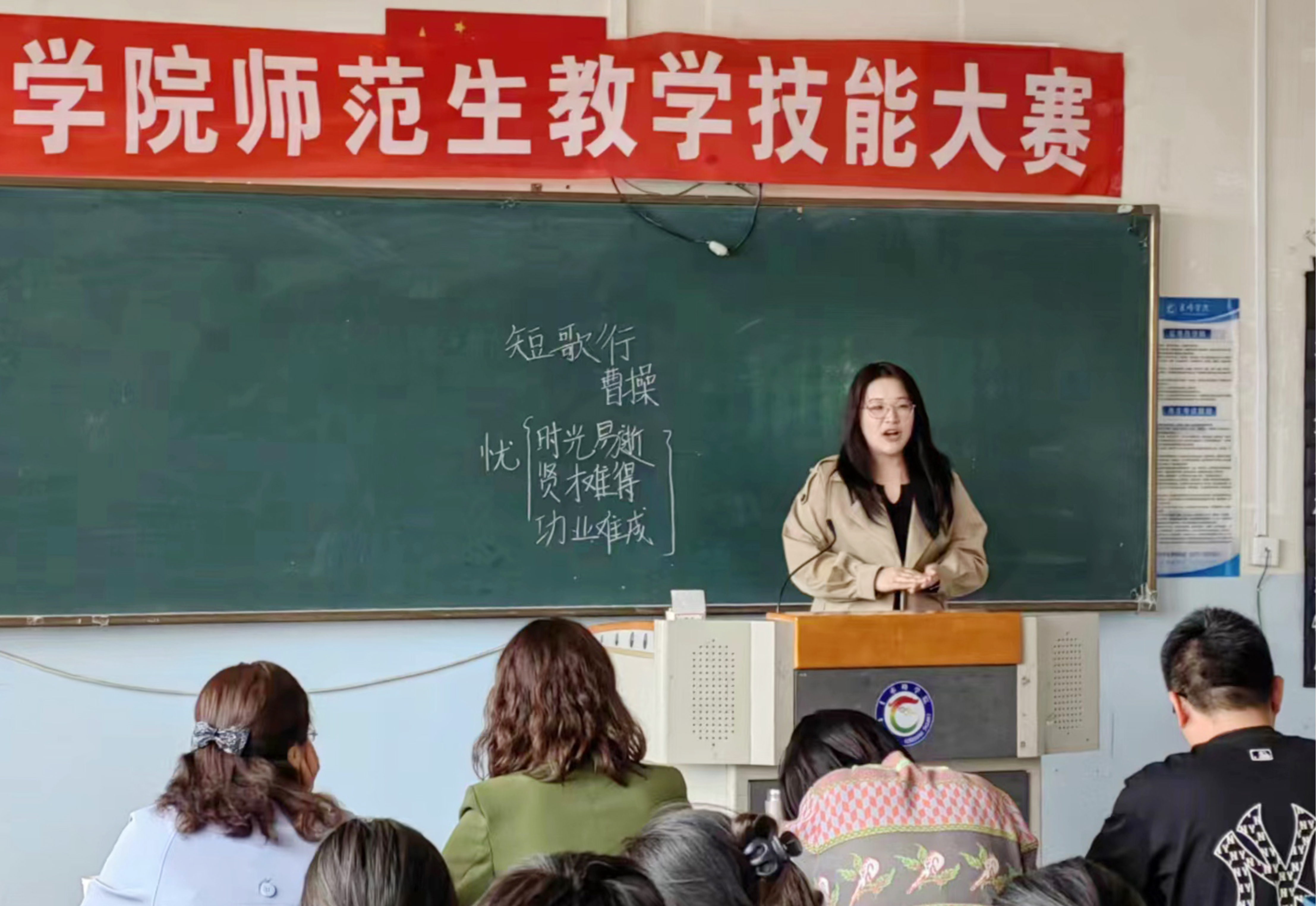 本次教学技能比赛是文学院在2023年度举办的第一次大型赛事,旨在进一步加强师范类专业学生的教师职业素养和教学技能培养,搭建“以赛促训、以赛促学、以赛促教”的交流展示平台。赛前,文学院院长孙永兰勉励全体师范生以此次比赛为契机,培养自身教学技能,提高教师职业素质,为未来从事教师职业打下坚实基础。