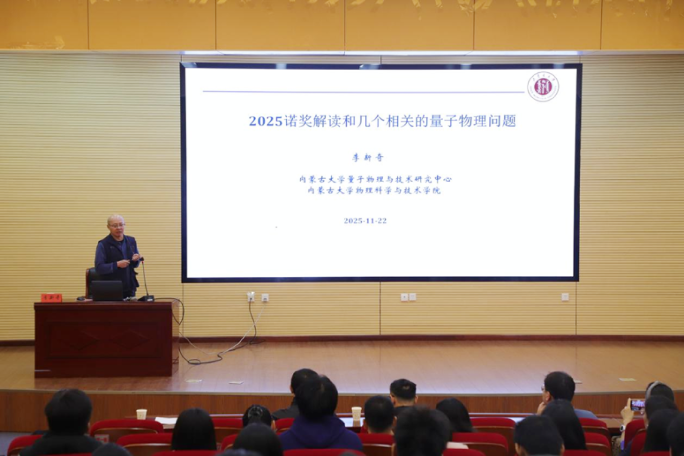 11月22日上午,应我校“科技大讲堂”邀请,内蒙古大学物理科学与技术学院教授、特聘院长李新奇为我校师生作了专题讲座,解读了诺奖热点与量子物理前沿。科技处处长汤获主持讲座。