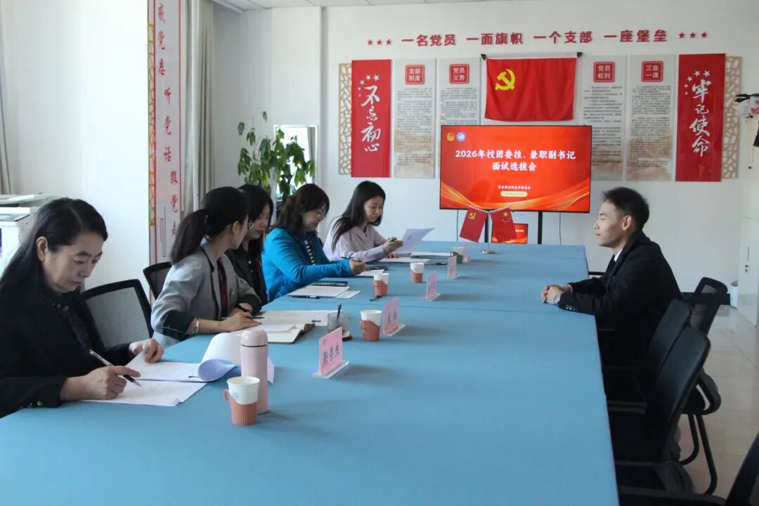 为深入推进学校共青团工作发展,着力建设一支素质优良、结构合理、专兼结合的团干部队伍,经学校党委同意,4月10日,校团委在崇德楼204会议室举行2026年校团委兼职副书记面试选拔会。党委组织部副部长张中旭、党委宣传部副部长孟凡珍、学生工作处副处长王楠、党委统战部靳荣杰科长等担任本次面试评委。面试由校团委副书记卢启阳主持。