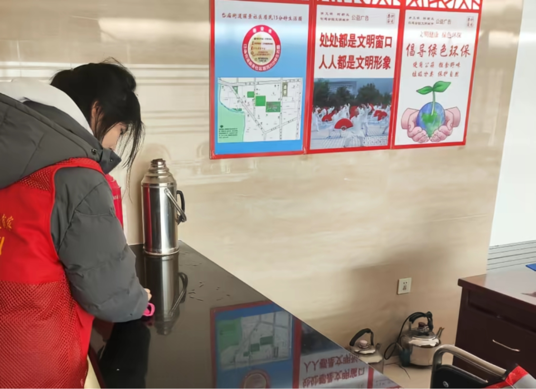 与此同时,更多同学走进社区,将温暖送到居民身边。在寒假托管班,他们化身耐心的“小老师”,辅导孩子们完成作业,精心组织观影、绘画、手工等趣味活动,用陪伴点亮多彩假期。在赤峰市宁城县、翁牛特旗等地的社区,他们忙碌于整理档案、协助老人申领电子医保、参与环境整治和政策宣传,用实实在在的行动服务邻里,传递着青年的温度与担当。