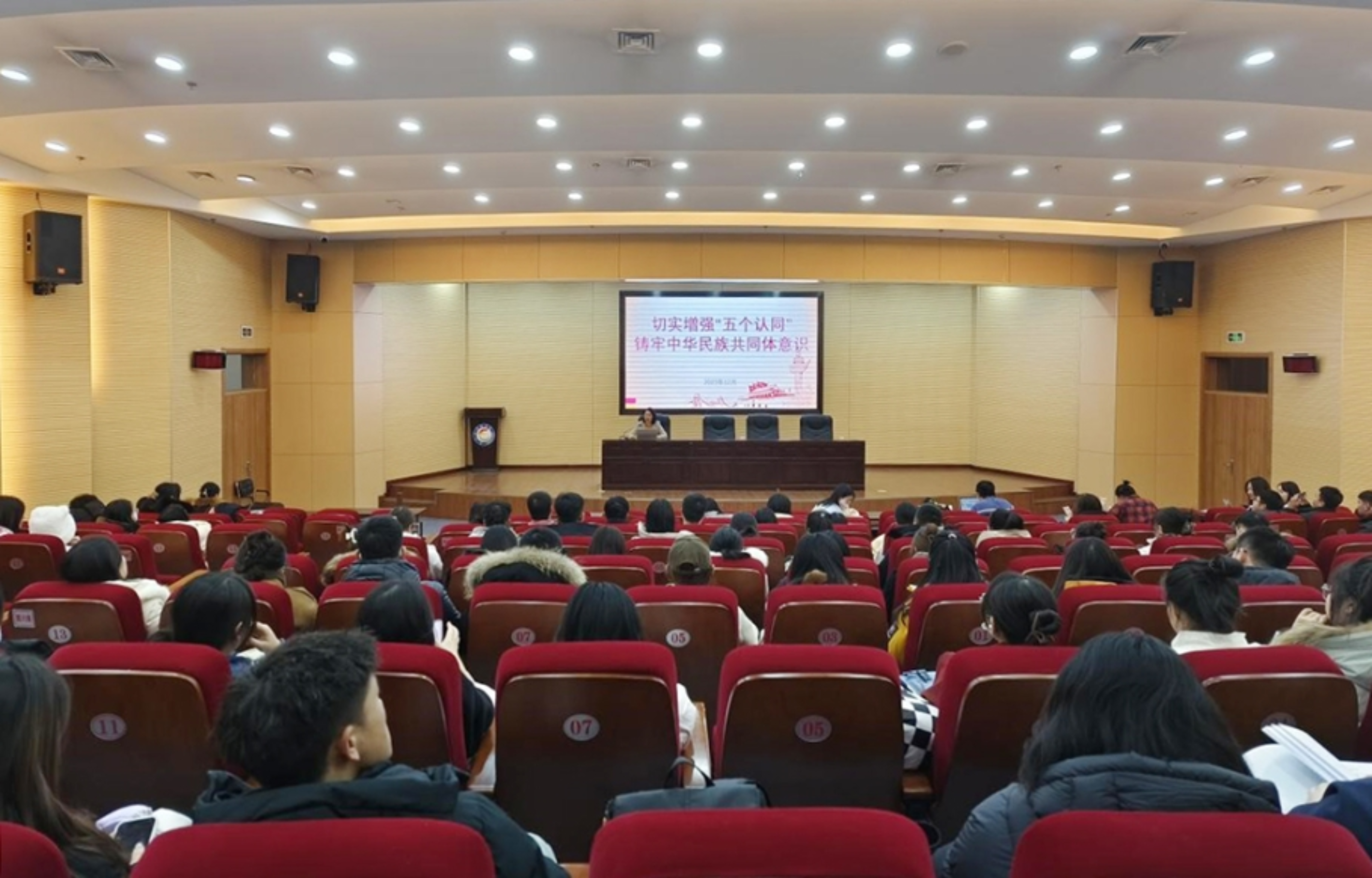 课上,鲍金花书记以《切实增强“五个认同” 铸牢中华民族共同体意识》为题,阐释了铸牢中华民族共同体意识的深刻意蕴,引导青年学生坚持用习近平新时代中国特色社会主义思想武装头脑、指导实践,感党恩、听党话、跟党走,以自身实际行动呵护好“模范自治区”的崇高荣誉。