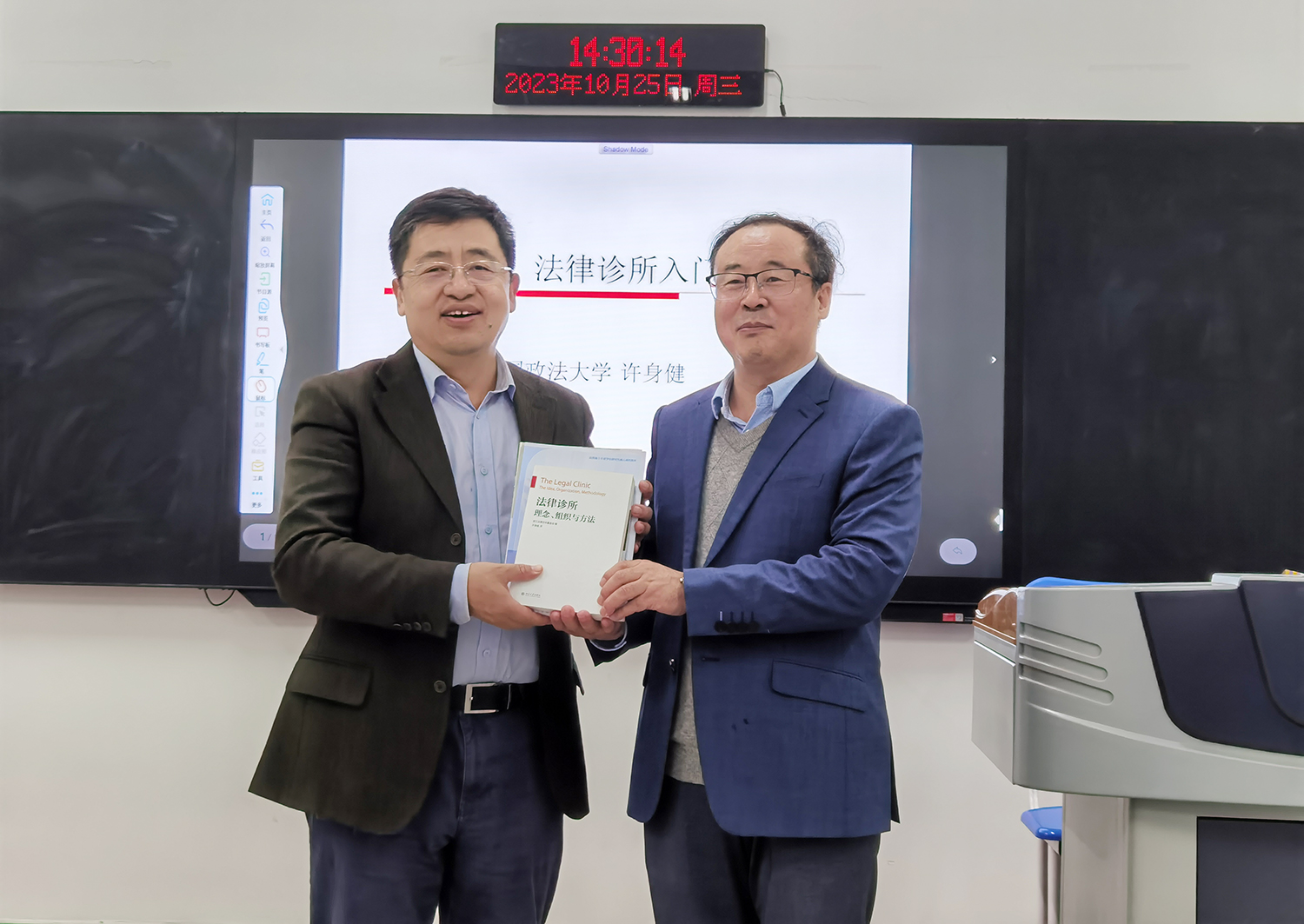 在逸夫理工楼113教室,许身健教授为师生作了题为《法律诊所入门》的专题讲座,从实践教学的含义、法学教育的历史沿革、诊所法律教育创意的出现、推广与全球化德国方面作了细致阐释,并就法律诊所课程的特点、教学内容、教学方法、教学原理等方面进行了分析讲解,突出强调了法律诊所教育在知识传授、技能培养、价值观塑造中的作用。讲座后,许身健教授还与法学专业教师就课程建设、课程思政等内容进行深入交流,解答了法学教学中的困惑。