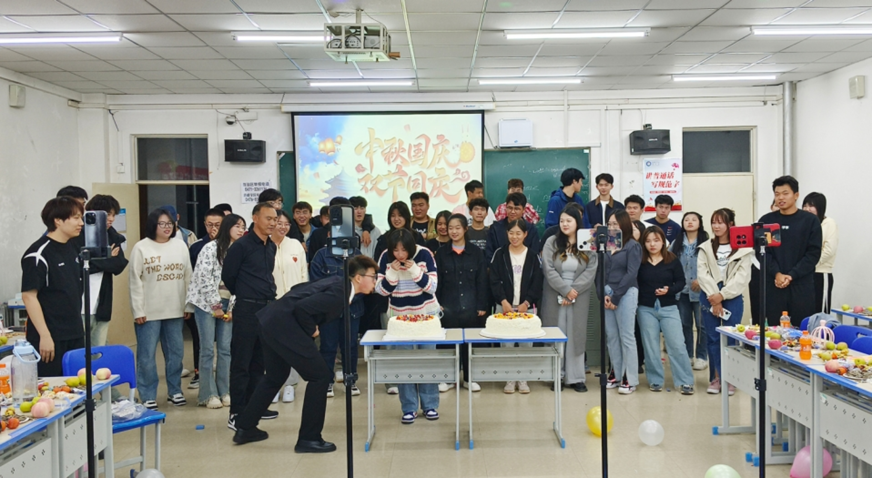 活动中,师生们一起参与了猜灯谜、数字拥抱等游戏,表演了文艺节目,共同切蛋糕庆祝节日。此外,学院还为同学们送上了精心准备的月饼及丰富的水果、小食品,传递了浓浓的关爱之情,让汇聚在经济与管理学院的莘莘学子感受到了家一样的温暖与幸福。期间,学院还通过微信连线的方式,让同学们与家长一同庆祝“双节”,向家长汇报了自己在校学习生活情况,并送上了节日问候。