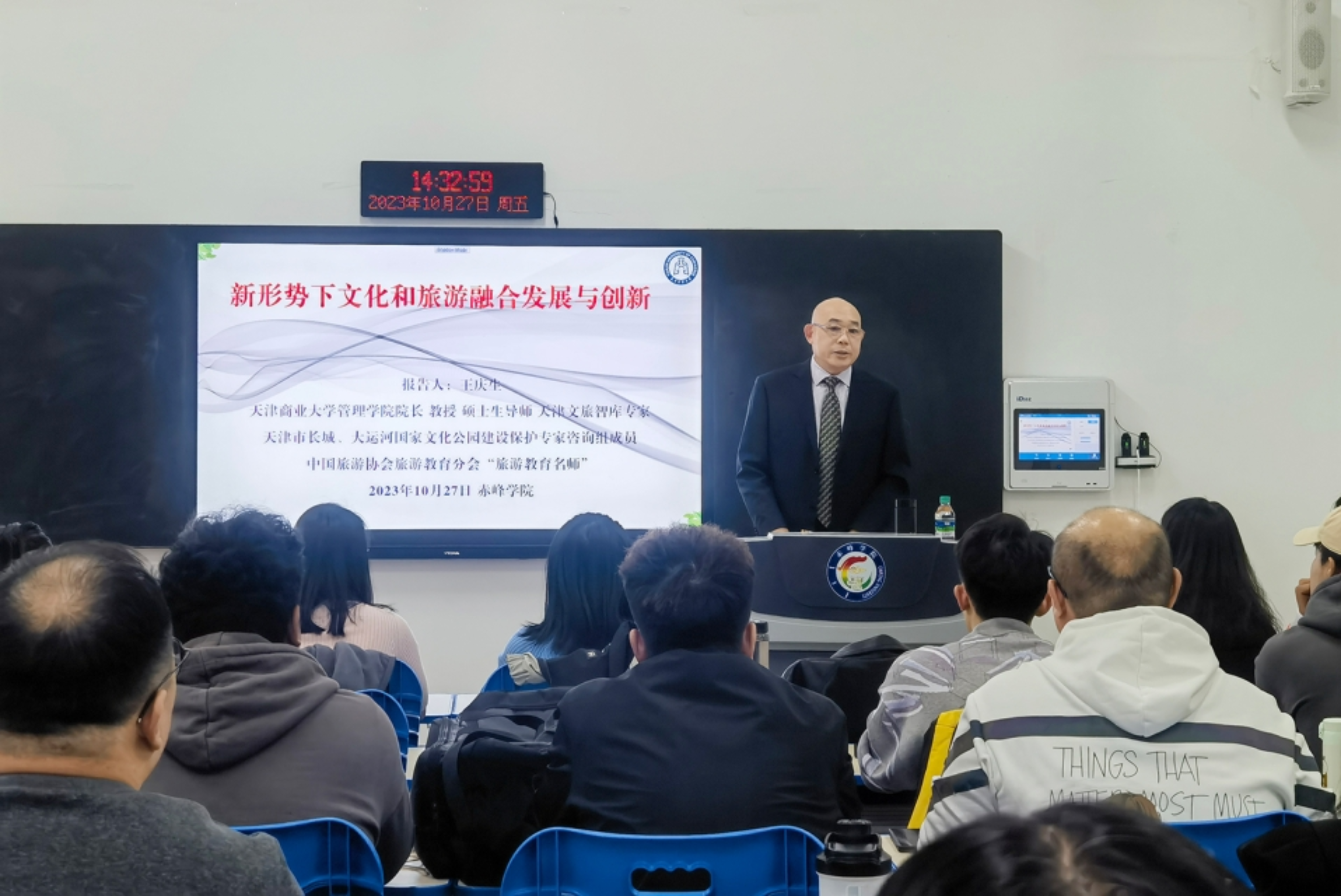 交流期间,王庆生教授为2023级旅游管理专业研究生作了题为《新形势下文化和旅游融合发展与创新》的学术讲座,从新形势下文化和旅游融合发展的理解与研判、文化和旅游融合发展与创新规划等方面进行了深入阐述,并就研究生如何提升研究兴趣、开展学业规划提出了指导意见;在对旅游管理专业学术导师、研究生课程建设负责人、任课教师进行的专题辅导中,王庆生教授围绕旅游管理专业硕士点建设、研究生培养、研究生课程建设、研究生个人素养提升等内容作了交流,提出了建设性的意见建议。