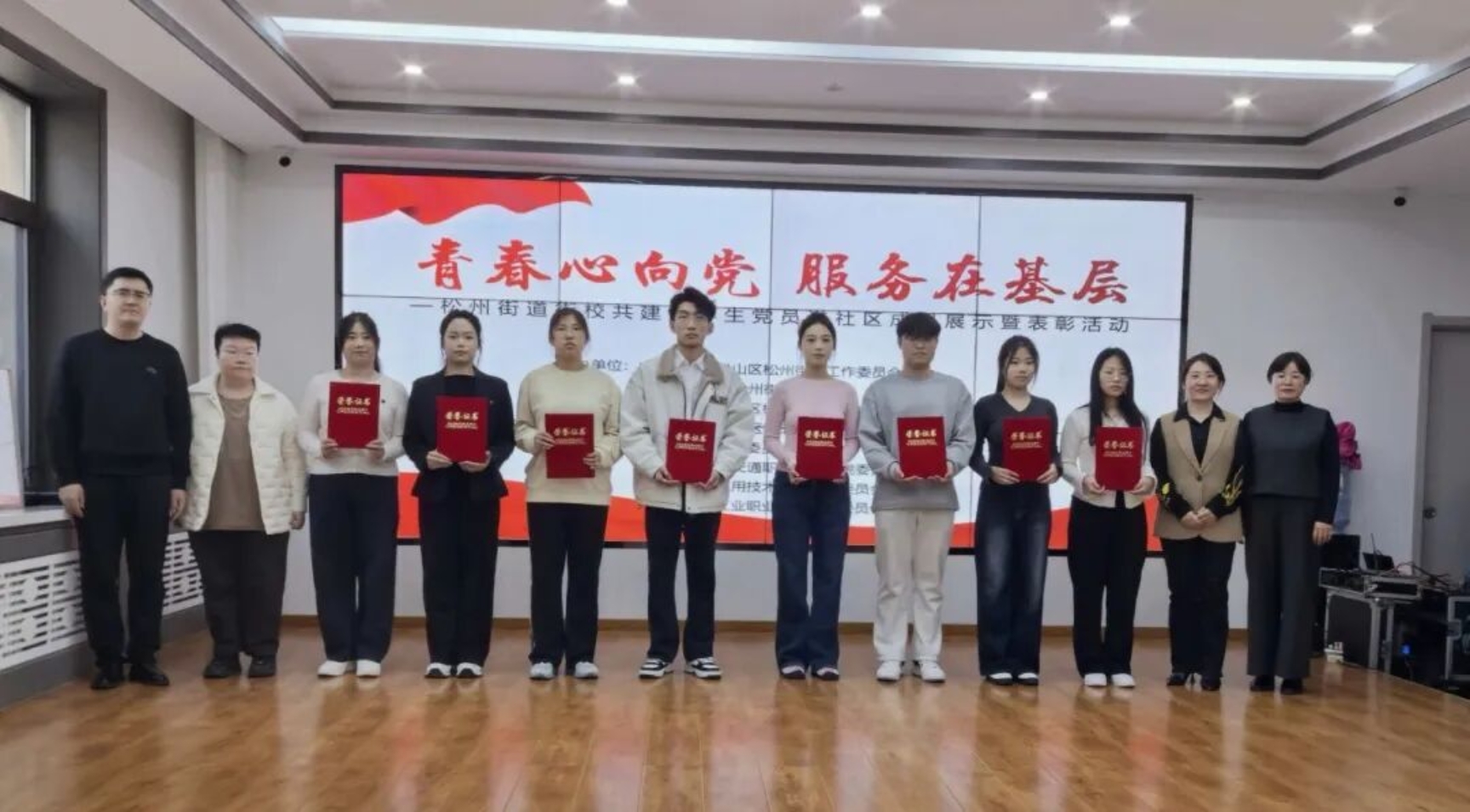 3月12日下午,松州街道于悦郡社区党群服务中心举办了主题为“青春心向党 服务在基层”的街校共建大学生党员进社区成果展示暨表彰活动,我校晨初社受邀参加了本次活动。