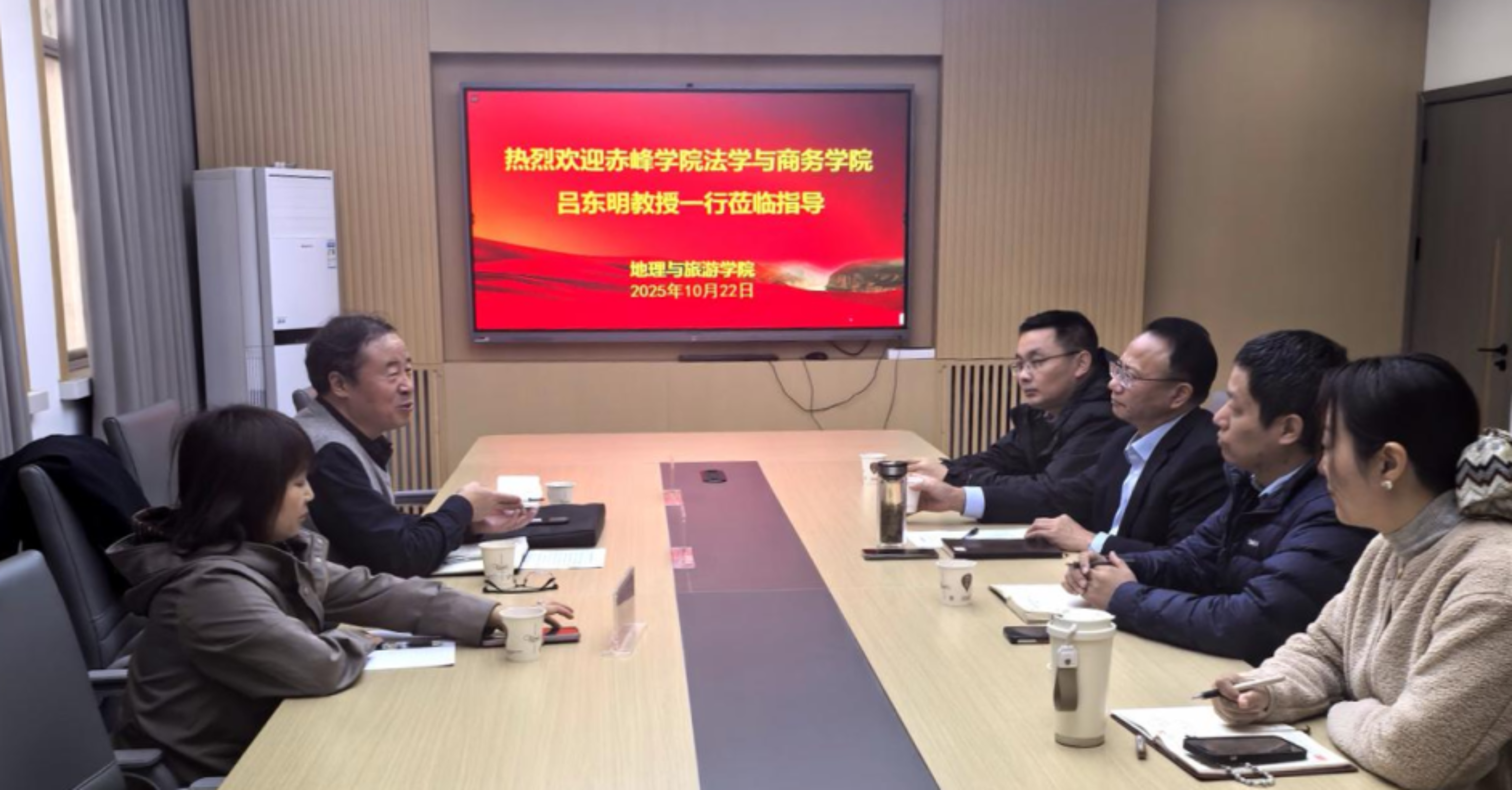 吕东明院长介绍了赤峰学院及法学与商务学院发展情况,对河南师范大学在国际合作领域的成效表示赞赏。他表示此次考察为学院拓展国际合作渠道、推进学位点建设提供了宝贵经验。