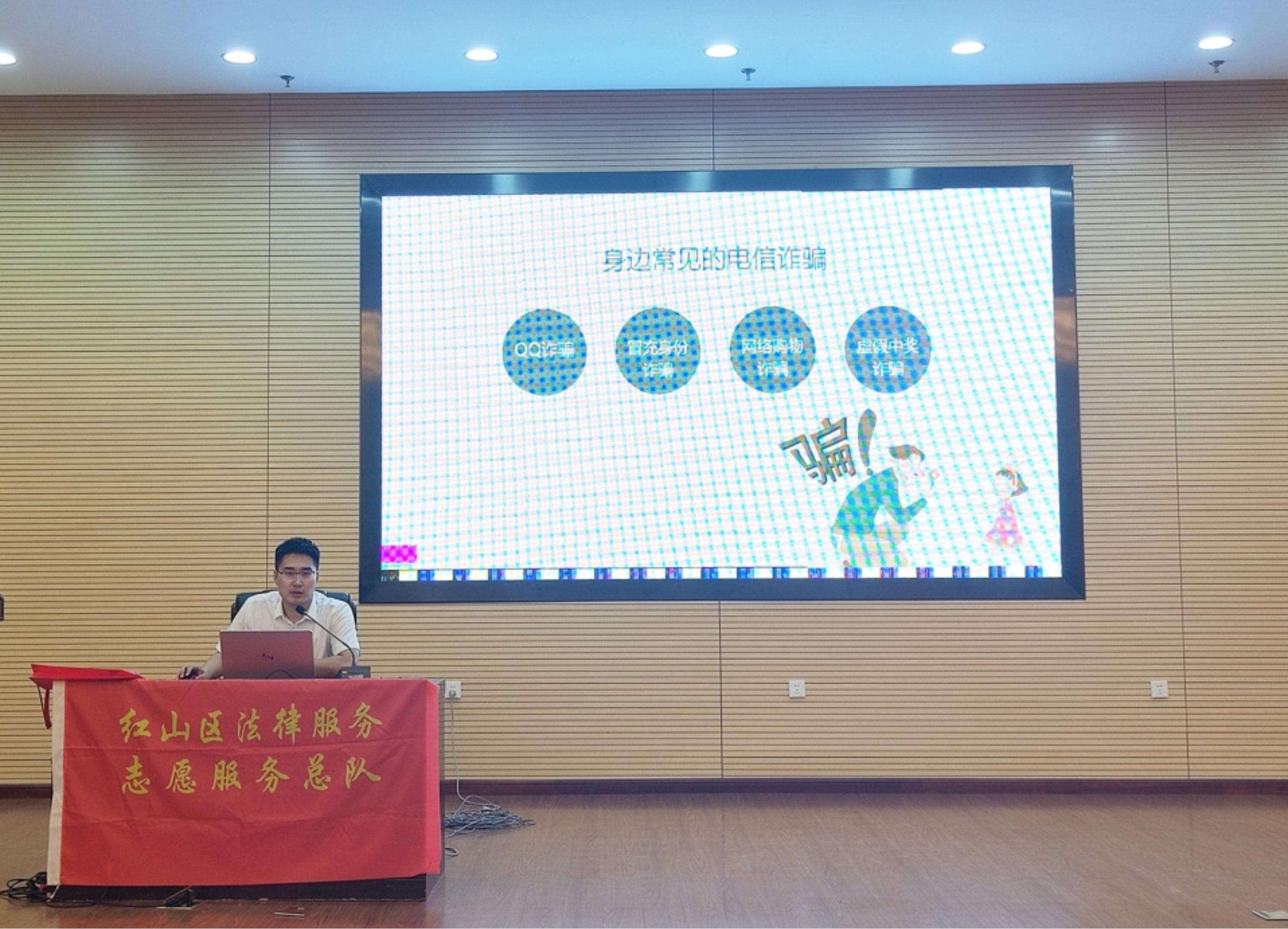 讲座中,内蒙古大川律师事务所尹适杰律师结合生动有趣的案例,从QQ诈骗、冒充身份诈骗、网络购物诈骗、虚假中奖诈骗以及在意识到被诈骗后的做法等方面进行详细讲解,提醒同学们时刻保持警惕意识,谨防电信网络诈骗的发生。期间,尹适杰律师和红山区司法局所属司法所还向同学们赠送了普法宣传册和法律资料。