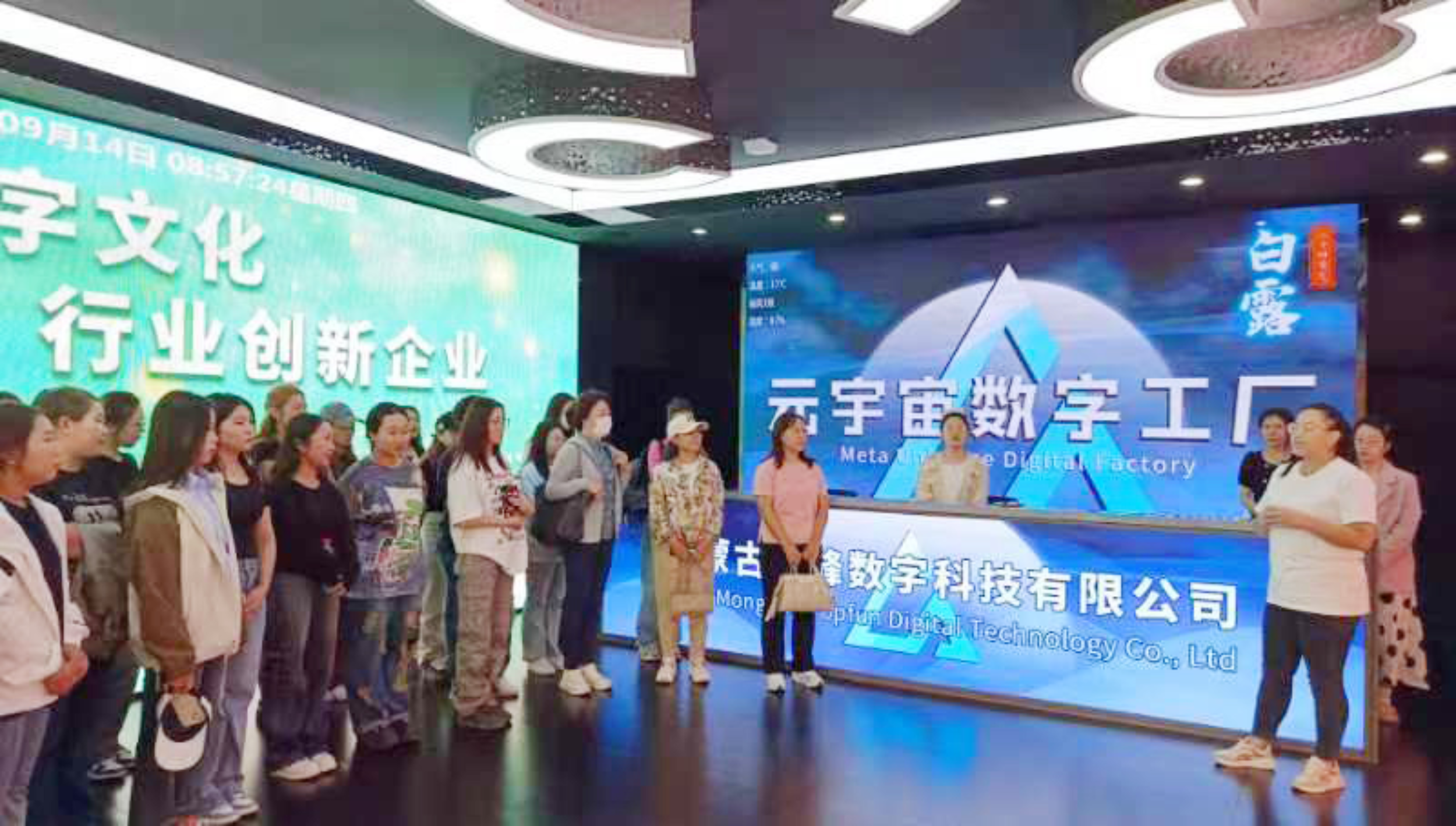 活动中,赤峰市中关村信息谷科技创新基地、瓜子张食品有限责任公司相关负责人分别从企业基本情况、产品研发、经营模式、企业文化等方面进行了详细介绍;乌兰图雅书记介绍了蒙古学学院教学科研优势、专业特色、人才培养、毕业生就业方向等情况;师生们实地参观了赤峰市中关村信息谷科技创新基地内的天峰数字科技有限公司、卡雷尔机器人技术有限公司、A10号软件研发楼,瓜子张食品有限责任公司,认真聆听工作人员的讲解,并在沉浸式展示与迎接导览区、虚拟数字人互动和技术应用体验区、动作捕捉拍摄和实时渲染体验区、L型巨幅沉浸式体验空间、AR和VR游戏体验区、虚拟拍摄空间、文创设计展示区七大数字化场景进行了深入体验。