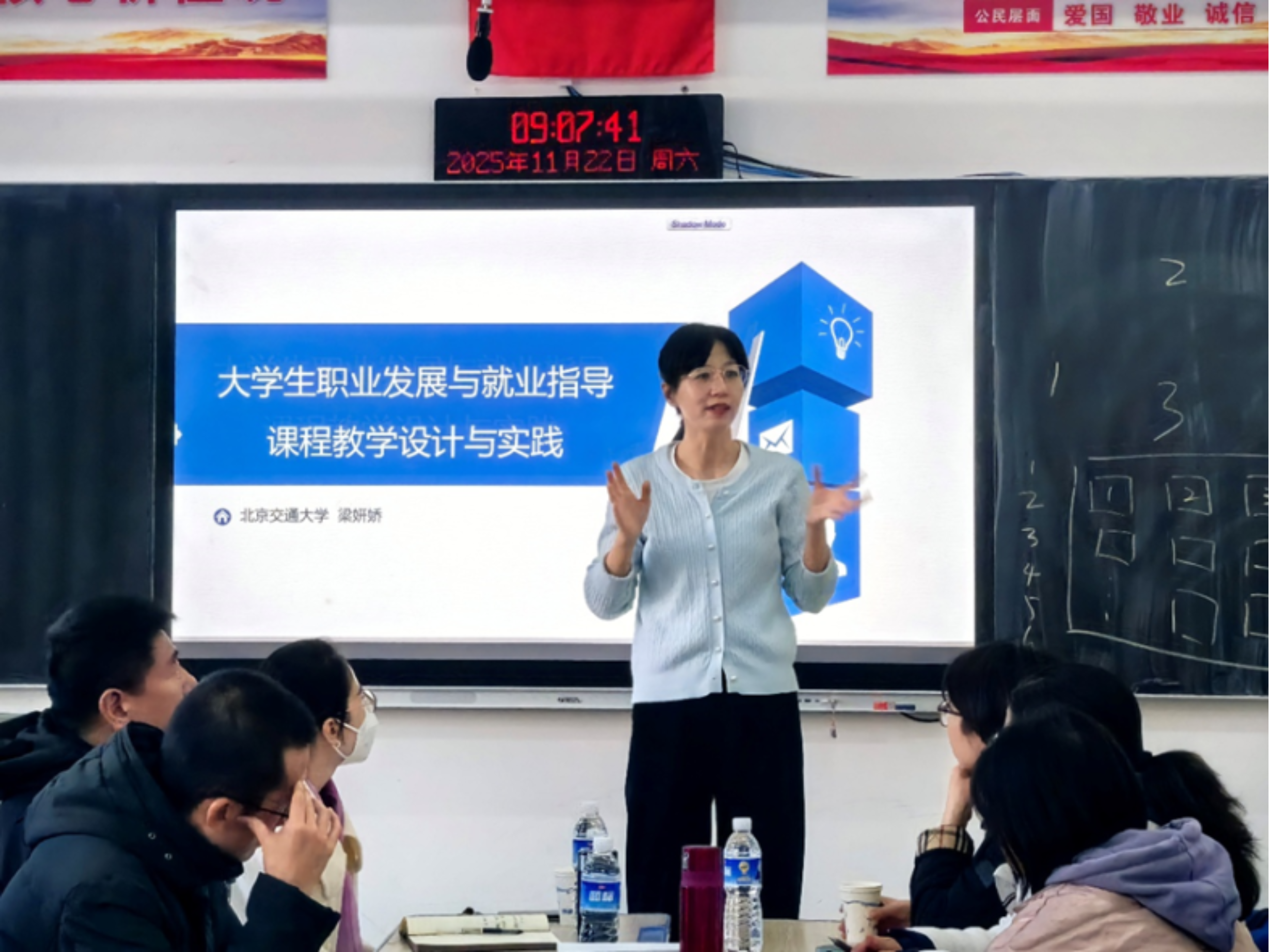 本次培训特别邀请了北京交通大学就业与创业指导中心就业指导研究室主管梁艳娇老师担任主讲嘉宾。梁老师结合多年职业规划指导经验及全国职业规划大赛评审标准,从职业规划书的撰写技巧、大赛答辩环节的准备要点、不同专业学生职业规划的差异化指导策略三个方面进行了系统讲解。在职业规划书撰写部分,她针对当前学生作品中存在的目标模糊、路径不清晰、自我认知片面等常见问题,通过典型案例对比分析,明确了规划书的核心要素与撰写规范;在大赛答辩指导环节,她结合往届大赛精彩答辩片段,详细拆解了答辩礼仪、语言表达、问题回应等关键细节,强调了“以终为始”的答辩准备思路。整场培训内容紧扣职业规划大赛需求,兼具理论深度与实践指导性。