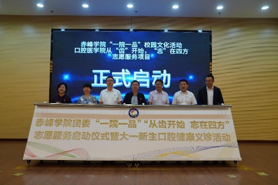 9月11日,由校团委主办、口腔医学院承办的赤峰学院“一院一品”校园文化活动——从“齿”开始,“志”在四方志愿服务项目在博物馆学术报告厅正式启动。校党委委员、副校长孙永刚出席仪式,校团委、学生工作处和口腔医学院主要负责同志参加启动仪式,启动仪式由口腔医学院党总支副书记高楠主持。