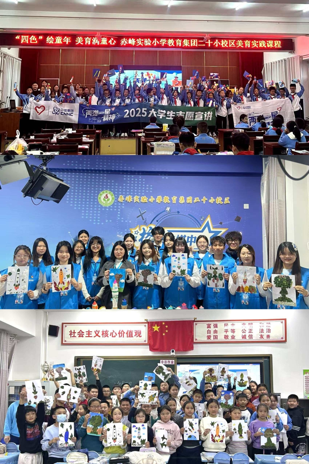 10月16日,美术学院“艺心向党 青春红色筑梦——‘两弹一星’精神耀北疆”志愿宣讲团走进赤峰市第二十小学,开展“传承‘两弹一星’精神 争做时代奋进少年”主题宣讲与手工制作活动。