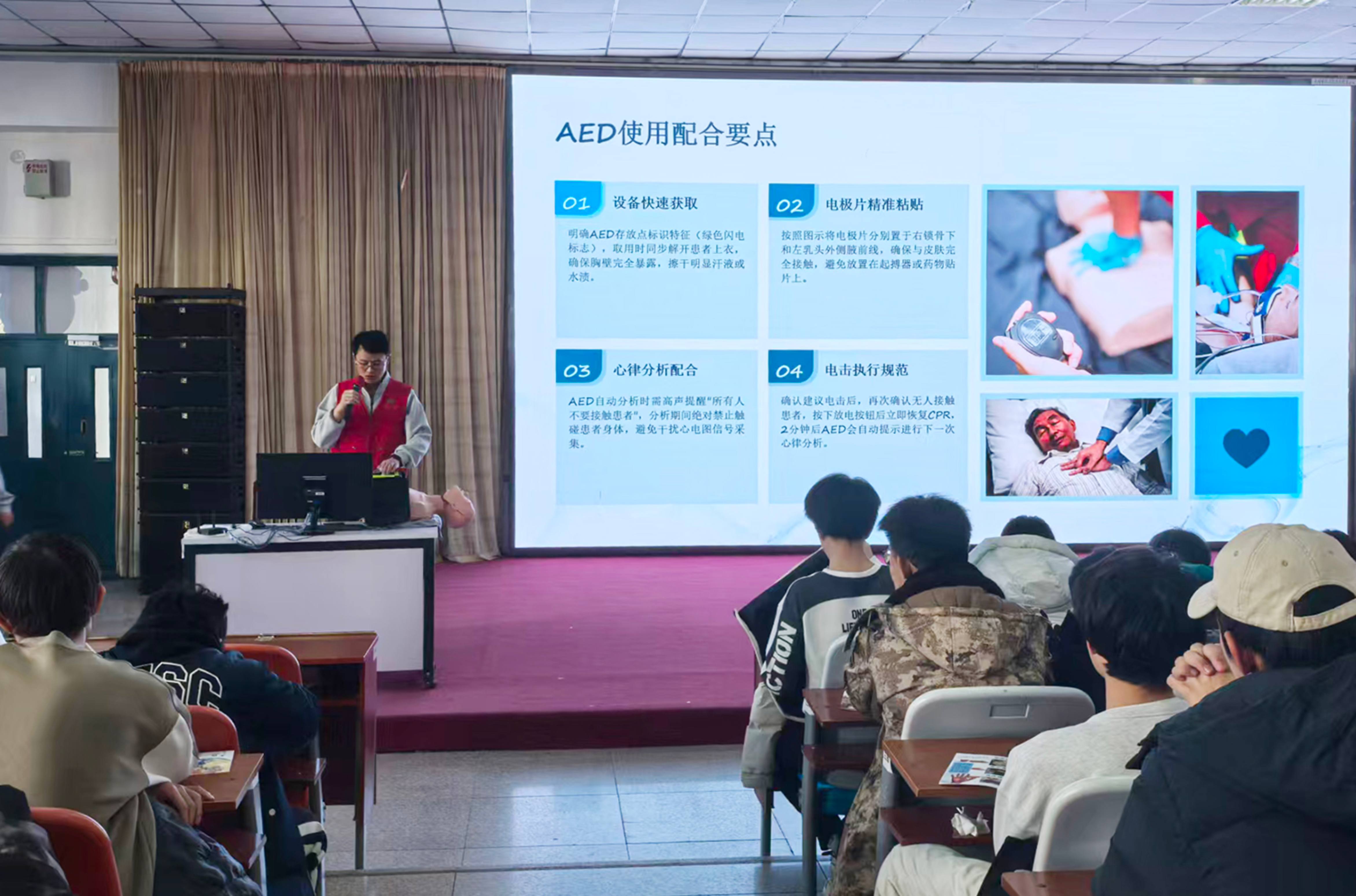 11月21日下午,我校人体生命科学馆、护理学院、附属医院联合赤峰市红十字会近30人走进赤峰工业职业技术学院智能制造工程系开展急救科普培训。