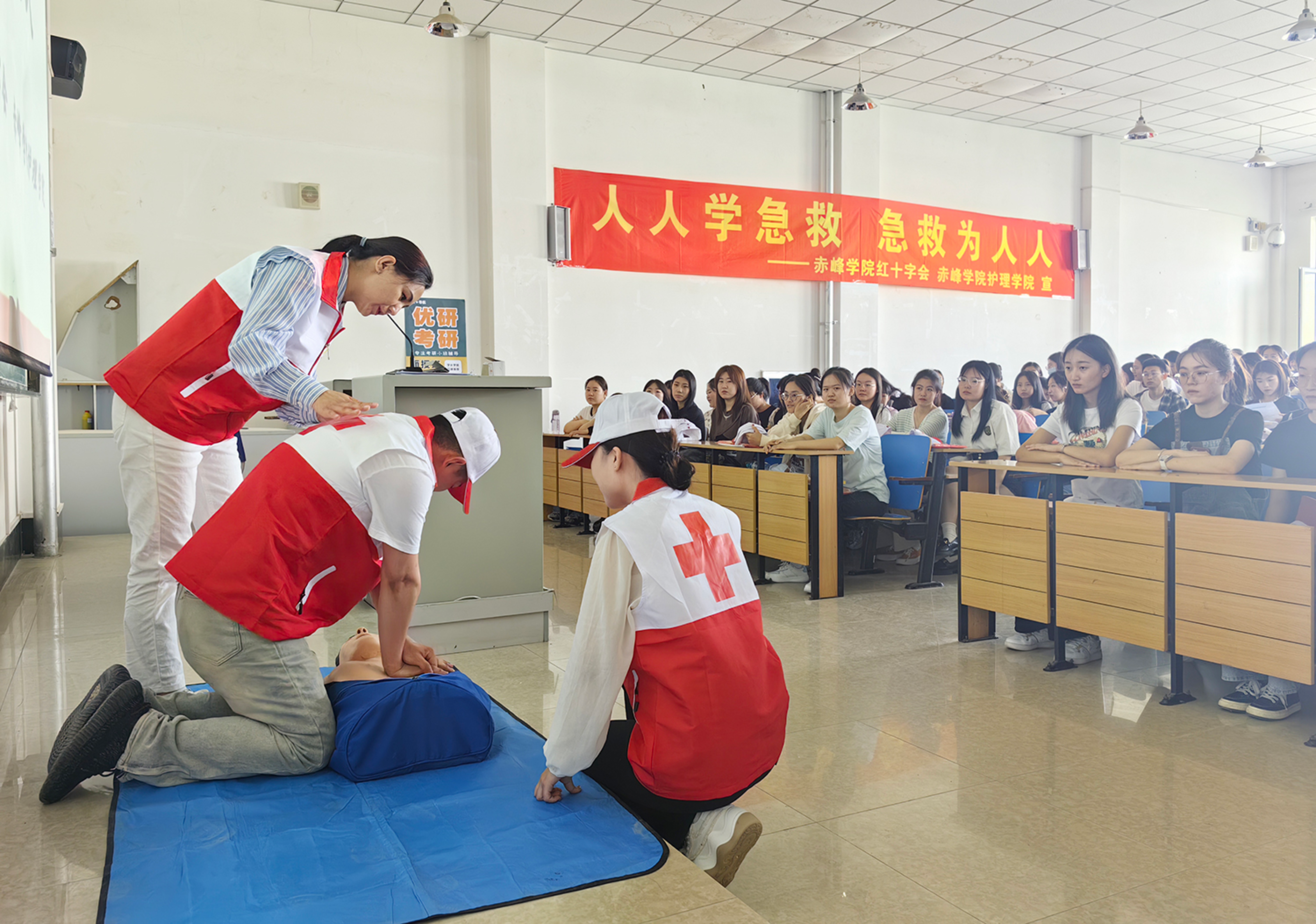 此次活动是护理学院落实“应急救护进课堂”要求,在专业与培训有效结合中引导学生塑造与专业素质相匹配的劳动精神的重要举措,旨在进一步弘扬“人道、博爱、奉献”的红十字精神,传播“人人学急救、急救为人人”的理念,增强青年学生的安全意识,提高学生应对突发疾病和意外事件的应急处置和自救互救能力,为建设平安校园、平安社会做出积极贡献。活动为期3天,期间,赤峰学院第二附属医院红十字志愿服务队党支部书记、队长车晓宇老师将对520名2023届护理学专业毕业生进行应急救护技能培训。