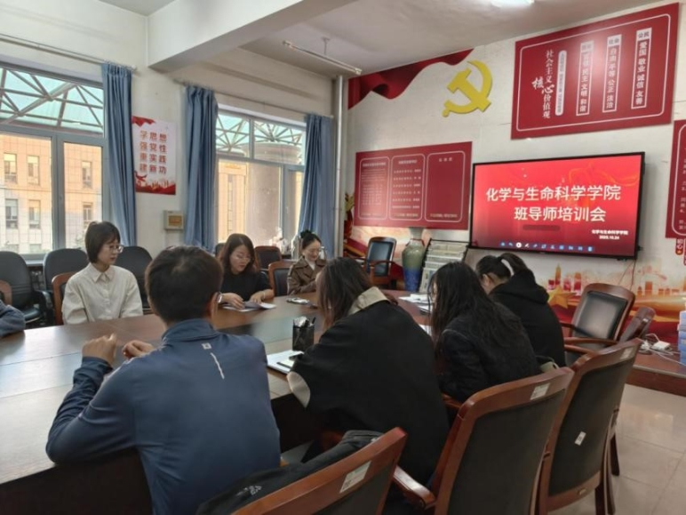 您所在当前位置: 首页 > 院系风采 院系风采 化学与生命科学学院举办学业导师培训会,聚力提升育人实效 时间:2025-10-27 来源: 作者: 10月24日下午,化学与生命科学学院在崇实楼408会议室举办学业导师培训会。学院副院长赵丽敏、教务办负责同志、全体学业导师参加培训。此次培训围绕培养方案解读、学业规划指导、学业困难预警等核心内容展开。培训中,赵丽敏副院长阐述了新时代背景下加强学业导师工作的重要性,重点就培养方案中部分模块进行解读,深化了与会教师对学业导师职能职责的认识,帮助他们掌握了实用指导方法。