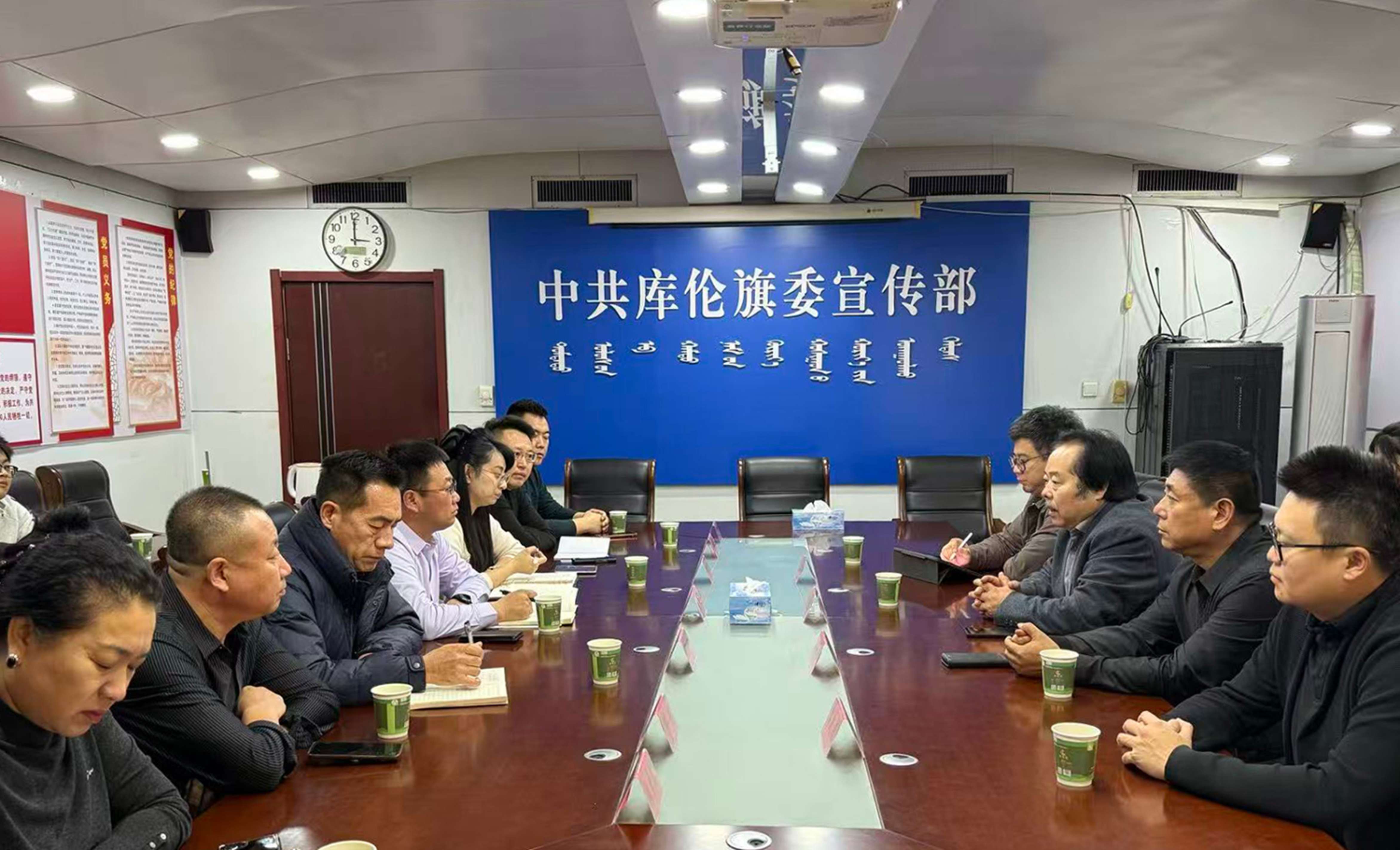 调研期间,学院团队与库伦旗委宣传部、文联负责人举行座谈。双方围绕协同发展战略,就校地合作方向与路径进行深入交流。都仁仓院长介绍了美术学院在非遗保护、艺术设计和党建赋能方面的资源优势;库伦旗方面结合当地文化特色与发展需求,提出了在文化传承、文旅融合等领域的合作意向。