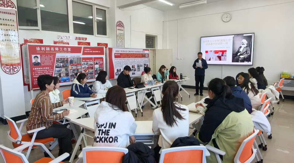 10月21日,马克思主义学院在崇仁楼518室举办第一期“真理之光”经典著作读书分享会。学院党总支书记张明、院长徐利颖和2025级学科教学思政专业研究生进行阅读分享,本科生参会旁听。