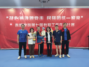为丰富校园文化生活,增强教职工体质,加强教职工相互交流,5月14日上午,由学校工会组织的“凝心铸魂跟党走 民族团结一家亲”赤峰学院第七届教职工乒乓球比赛在我校附属中学乒乓球馆举行,由我院李晓伟院长、梁明智老师、梁贵谦老师和曹树伟老师组成的物理与智能制造工程学院教职工代表队经过激烈角逐取得季军的好成绩。