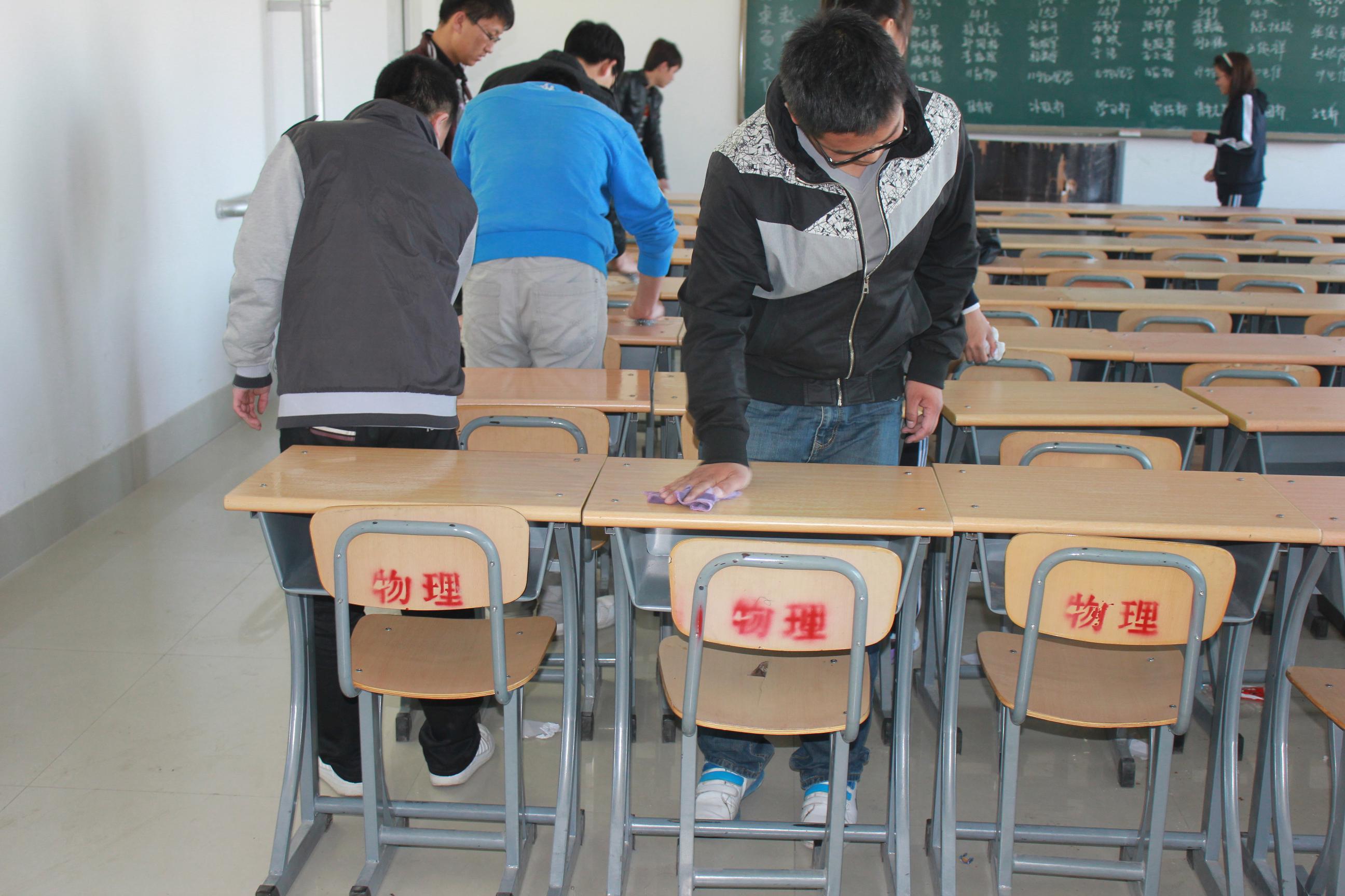 ”课桌文化“是大学校园中一道独特的现象,这从一个方面反映出当代大学生的思想素质,为了消除这种有损大学生形象的行为,物理与电子信息工程学院组织学生党员、积极分子、部分学生干部于4月11日下午展开了一场题为"清理课桌文化 共建良好环境"的行动,大家在逸夫理工楼教室用洗涤剂、橡皮等工具对桌面上的字迹、图画进行了清理。同时,我们也向全校的学生宣传保护教室环境"的思想,号召全校学生一起来努力清除这些垃圾,希望大家在以后的日子里保持课桌清洁,这才真正体现当代大学生应有的素