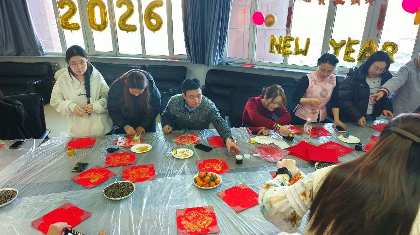 在2026年新年来临之际,为丰富教职工精神文化生活,弘扬优秀传统文化,营造喜庆浓厚的节日氛围,12月30日上午,我院举办“欢喜拓福印启新程”主题迎新年活动。