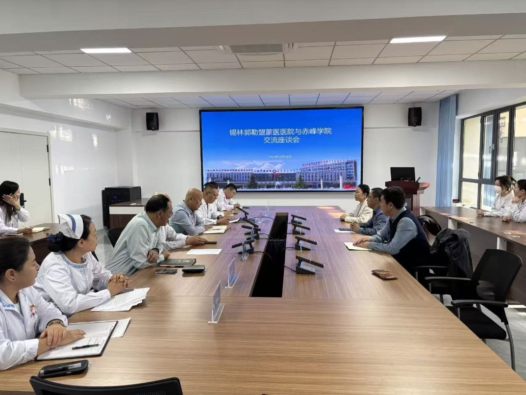 一行人与两家医院深入座谈交流。在座谈会上,两家医院院长详细介绍了医院的发展历程、特色优势、在蒙医药领域的深厚积淀以及临床、教学、科研等方面的现状与规划,期待与我校携手,共同探索高层次蒙医药人才培养与科技创新的新路径。