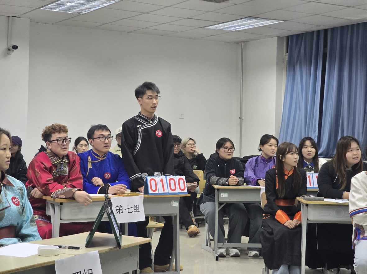 11月27日下午,中医(蒙医)学院在崇仁楼121教室举办第三届“罗布桑杯”蒙医药专业知识竞赛。学院领导班子成员、蒙医学专业教研室负责人及学生代表观看比赛。