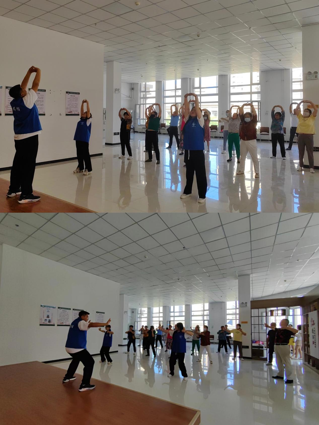 活动中,中医(蒙医)学院副教授孙琪老师科普了八段锦的由来、功效、保健知识等内容;八段锦教学小队现场向社区居民教授八段锦的动作要领、练习技巧,居民们态度认真、神情专注、潜心练习,表现出极大的热情和兴趣,充分展现了社区居民活力、向上的精神面貌;最后,活动随着社区居民准确有序的操作中结束。
