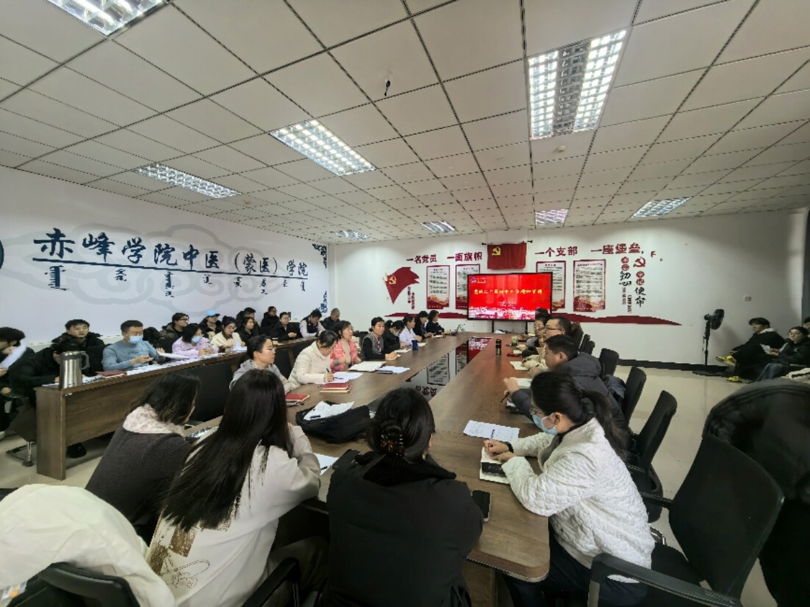 12月10日下午,中医(蒙医)学院在崇仁楼208会议室开展党的二十届四中全会精神宣讲活动。全体教职工和青马班学员参加,学习会由党总支副书记朱蕾主持。