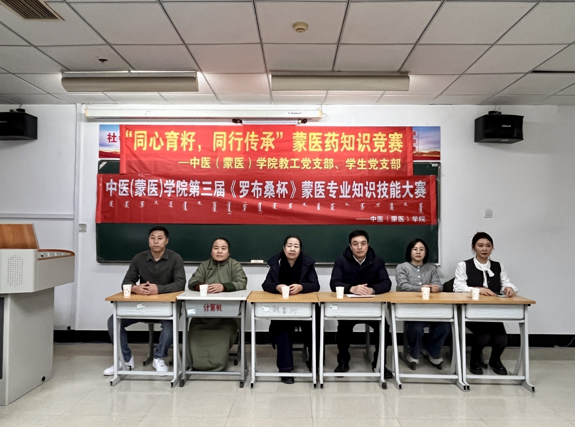 11月27日下午,中医(蒙医)学院在崇仁楼121教室举办第三届“罗布桑杯”蒙医药专业知识竞赛。学院领导班子成员、蒙医学专业教研室负责人及学生代表观看比赛。