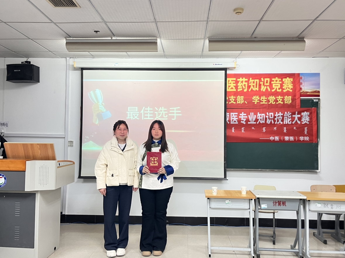 经过多轮激烈比拼,比赛结果最终揭晓。2023 级蒙医本科2班的萨出日娜、永芳、敖国蕊三位同学凭借扎实的专业知识和出色的赛场表现,荣获一等奖;2023级蒙医本科班丽娜、乌日力嘎、澈力木格、陈文凯、朱宏鹰、胡福星等同学获得二等奖;2022级蒙医本科班特日格乐、李建明、苏娜日等九位同学荣获三等奖;2023级蒙医本科1班青云、曹佳欣,马晓霞获得优秀奖;来自 2023级蒙医本科1班的澈力木格同学,凭借卓越的综合实力摘得 “最佳选手” 称号。